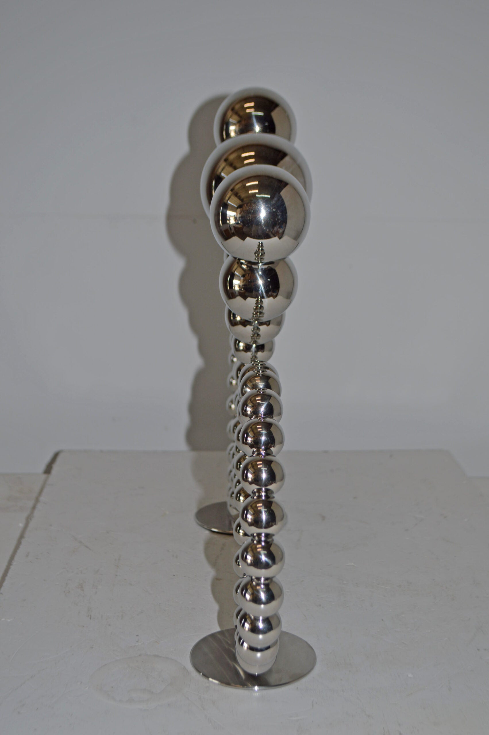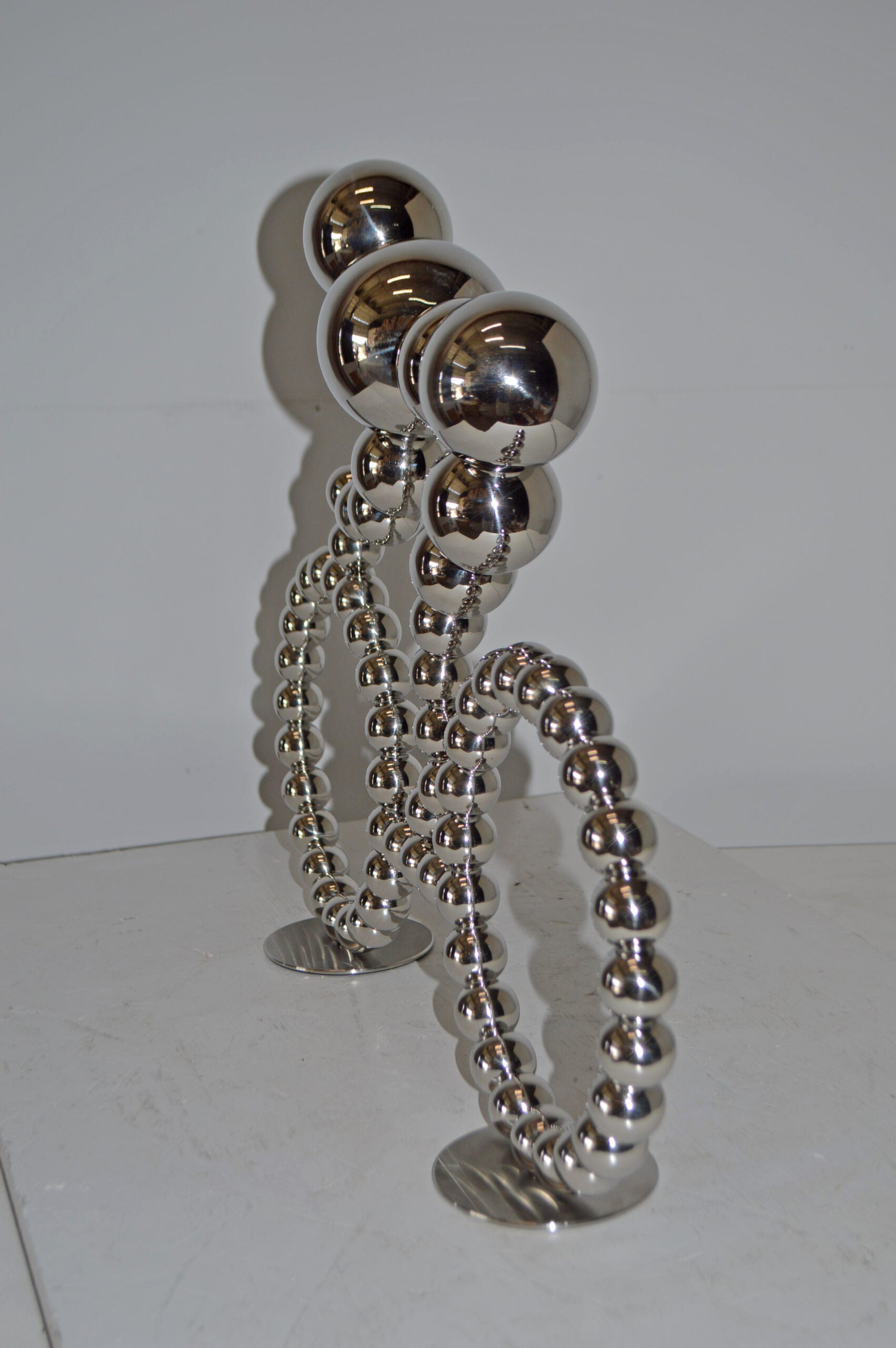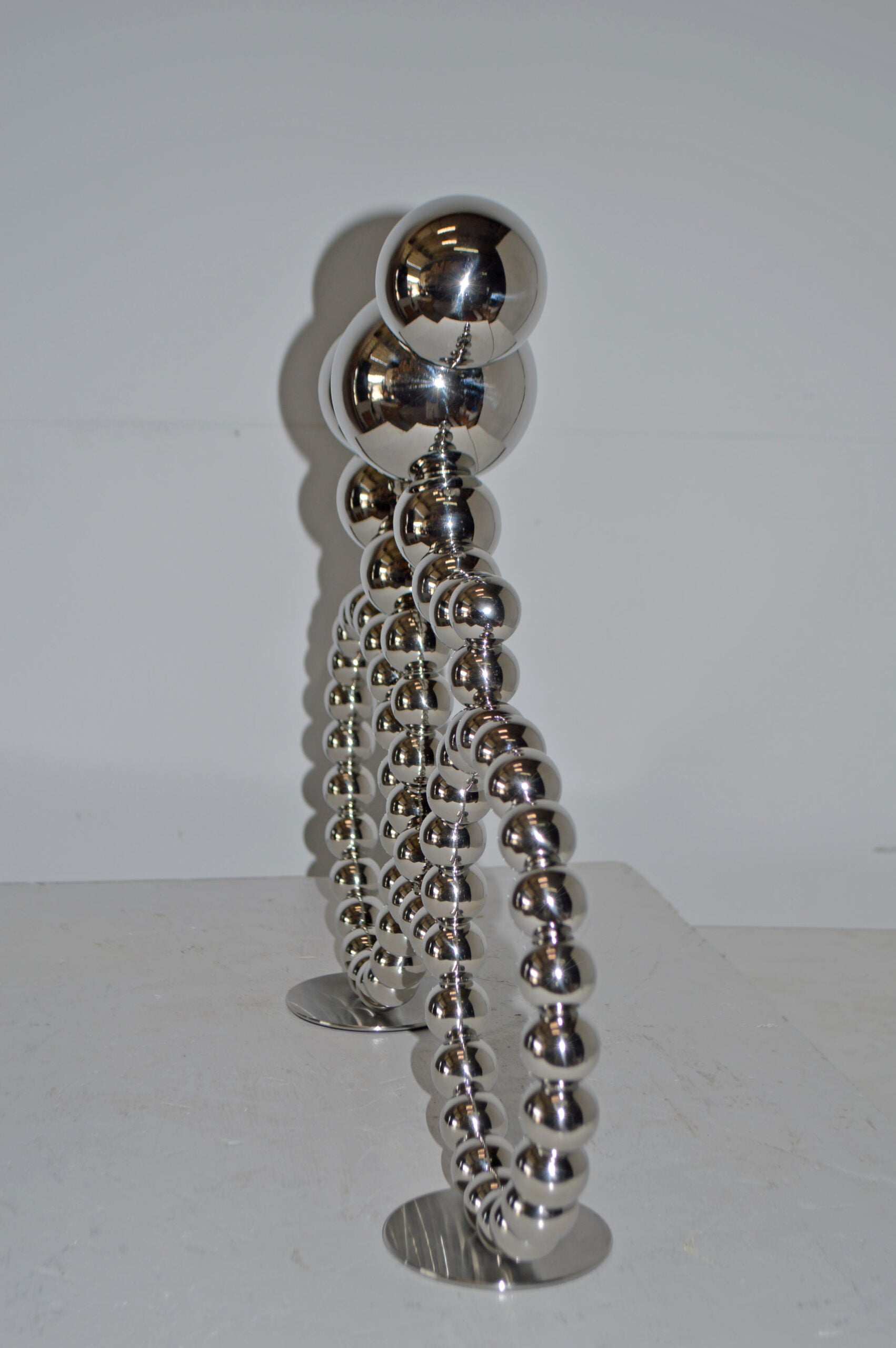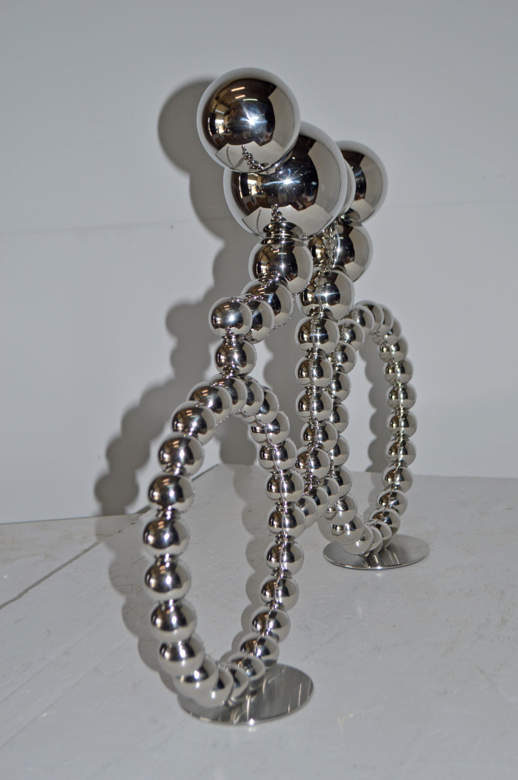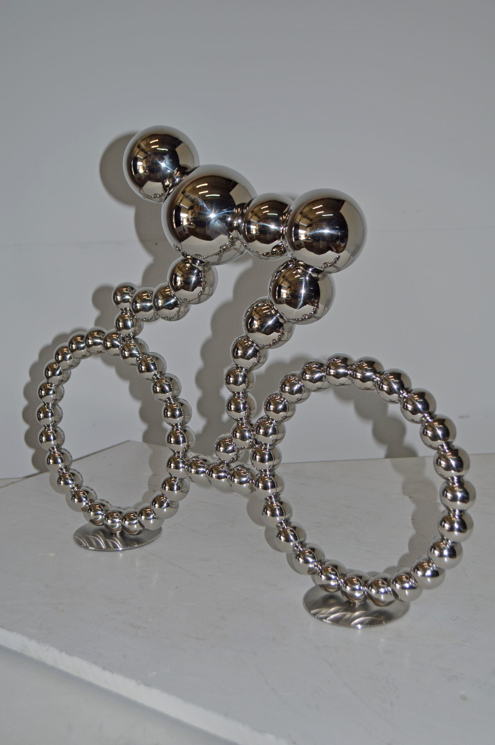 Decorate your home with this beautiful, tabletop, modern looking, stainless-steel abstract of a rider on his bike. These decorative abstracts made of Stainless-steel balls will become an extraordinary focal point to any kitchen, Livingroom, or patio! We sell a whole line of this style of modern art. You can be sure they will be a conversation starter and the topic of much appraised comments in your home. Size: 22"L x 4"W x 17"H. Weight is: 2Lb
