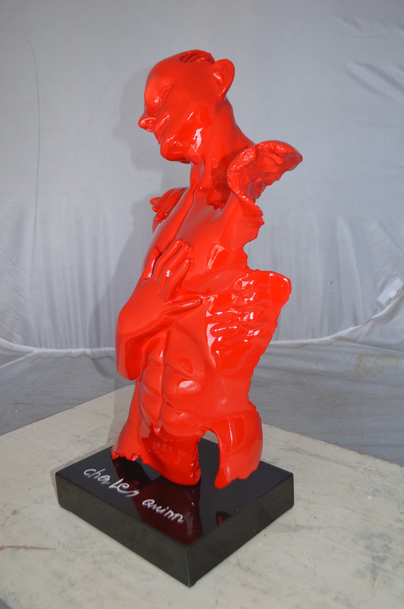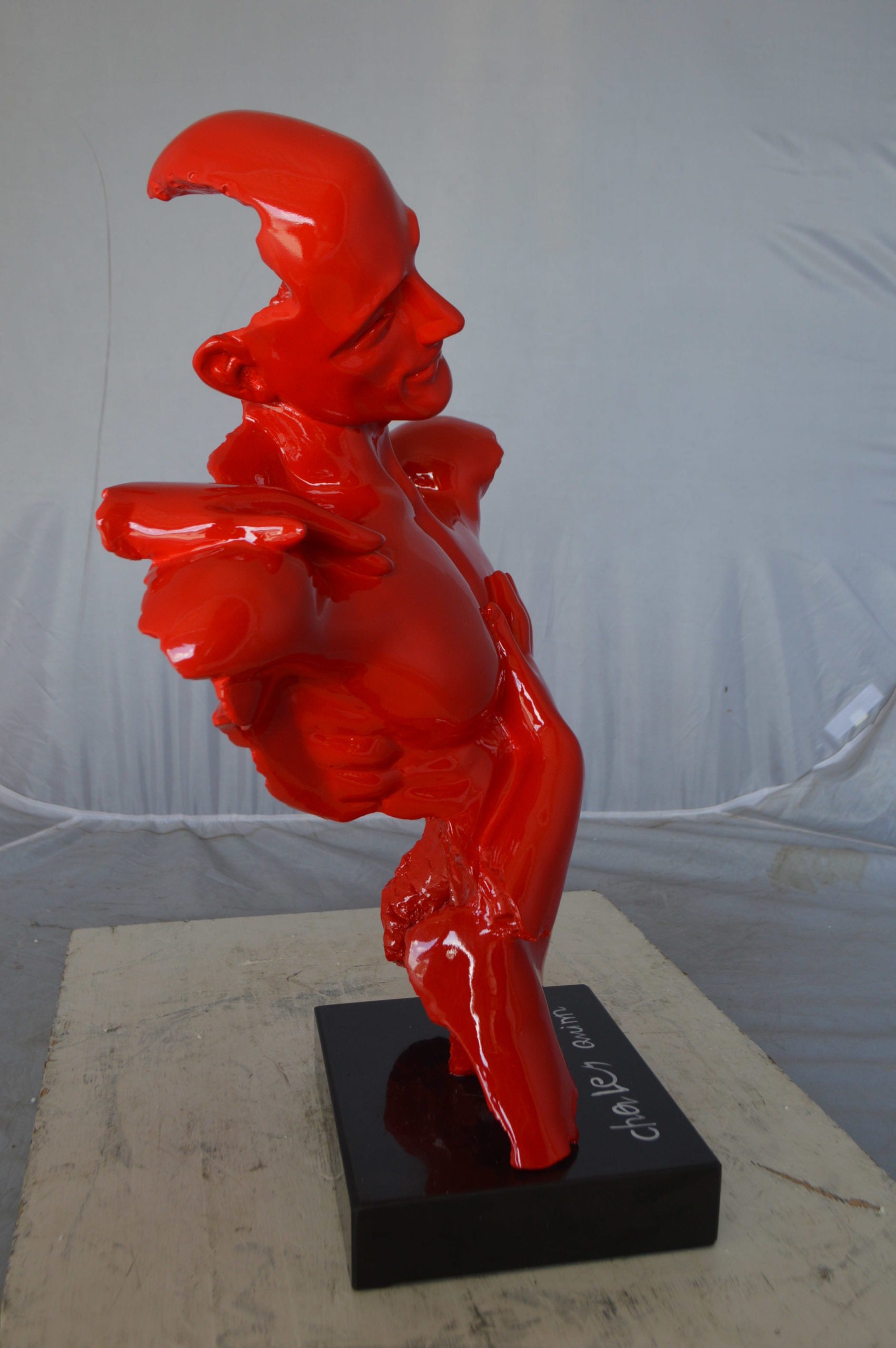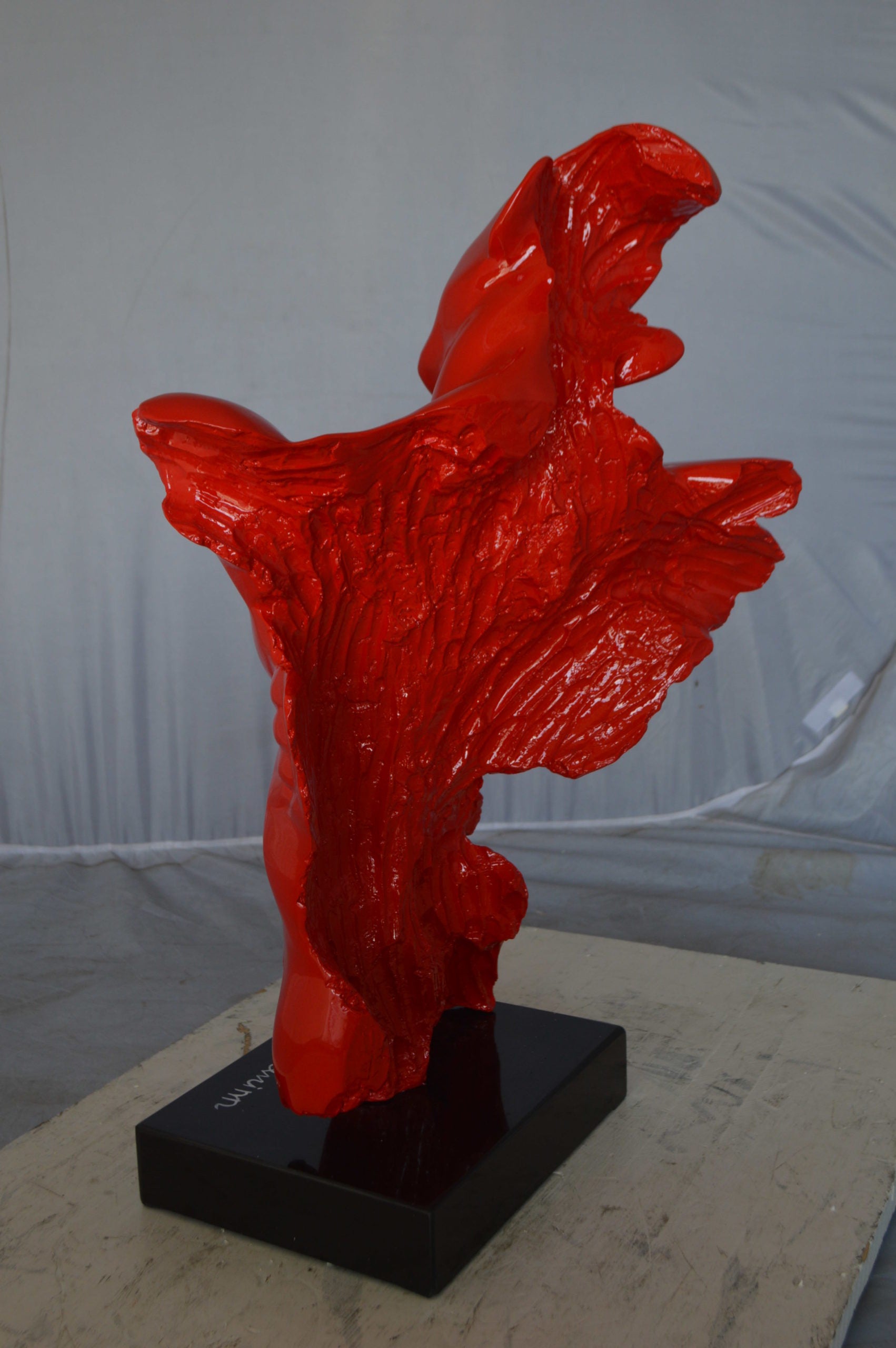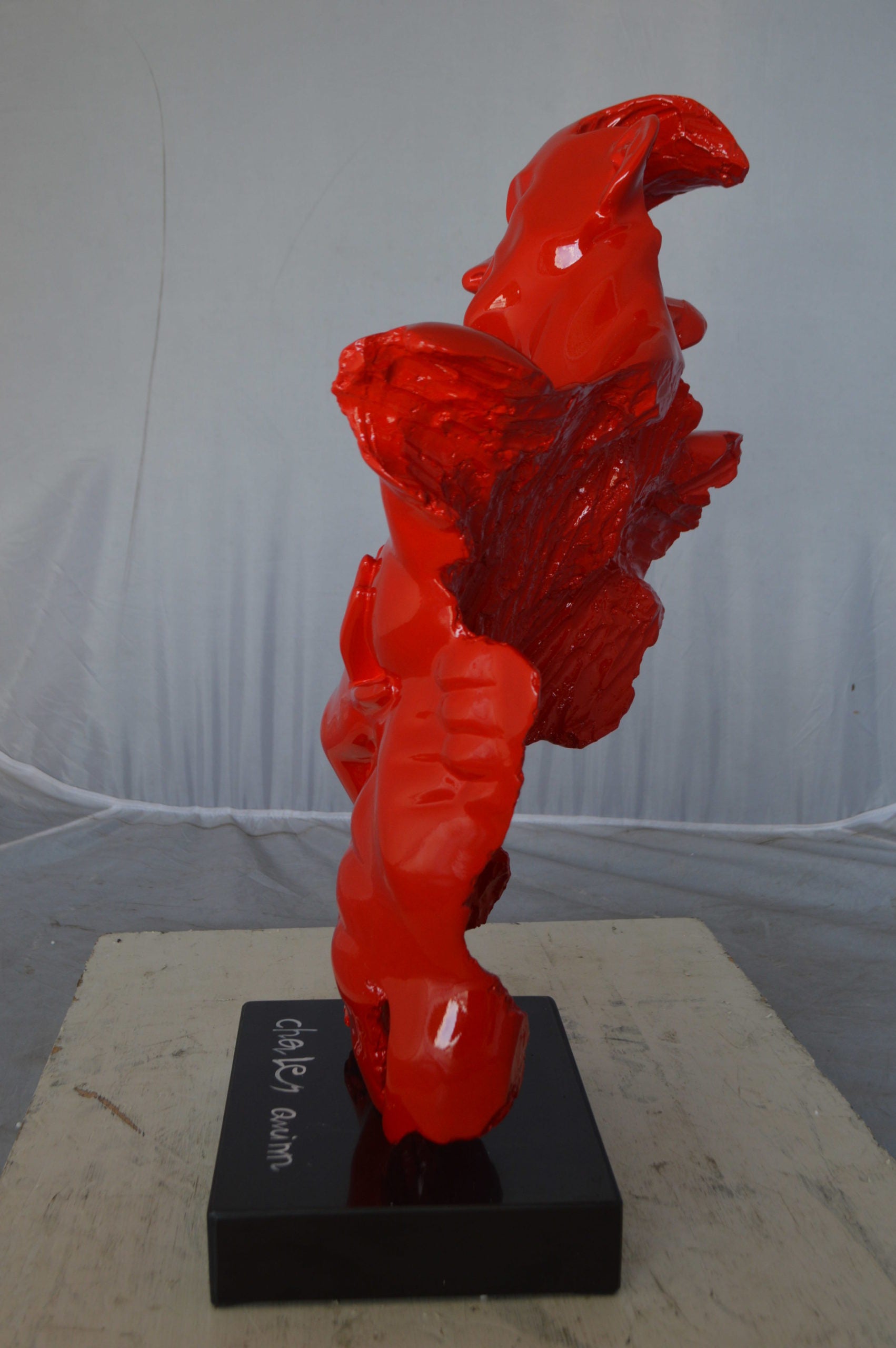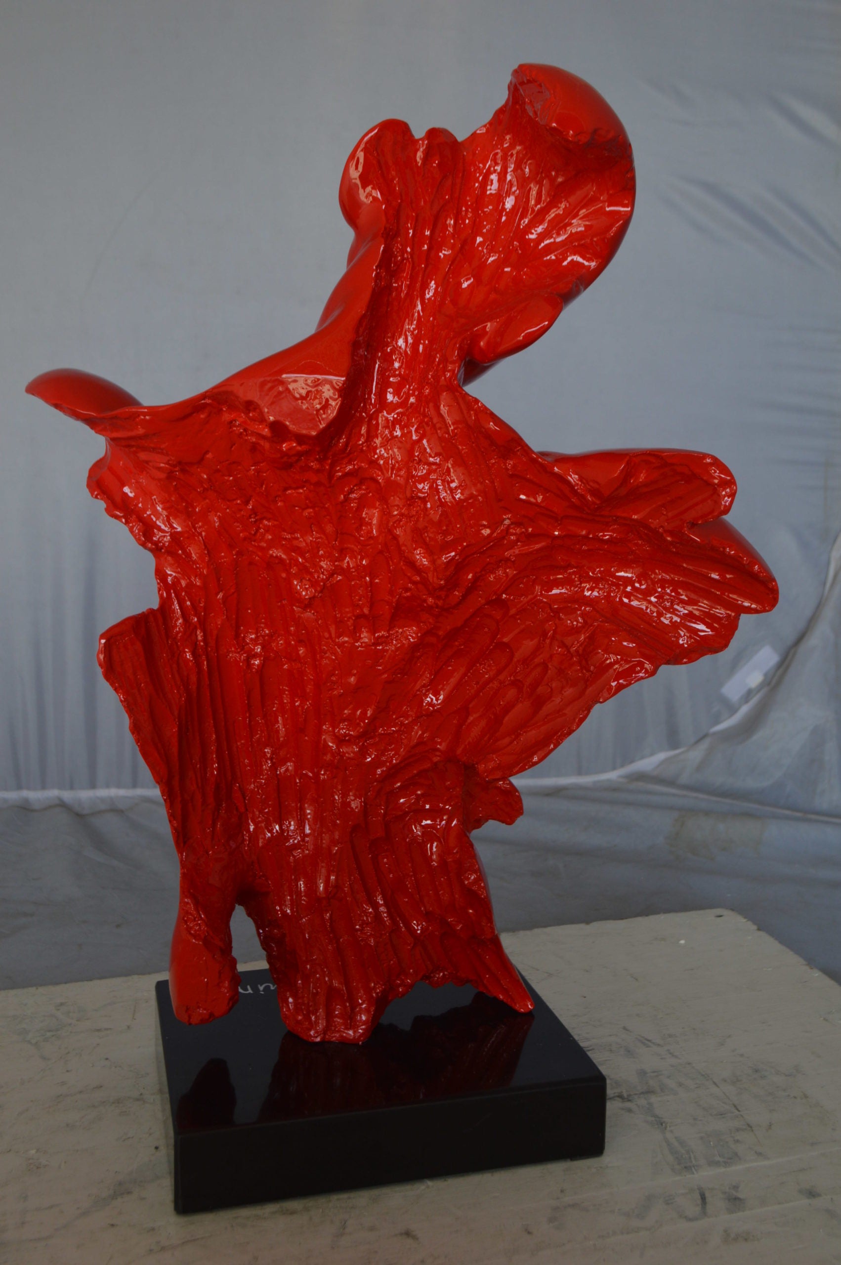 This modern-style red resin statue is an extremely artistic piece signifying the bust of the man with arms surrounding him. This sculpture connotes an abstract expression based in reality. This beautiful work of art is a wonderful fit for any art enthusiast and would work wonderfully in any home or office. Many customers choose to purchase the Modern resin statue of a woman hugged by a men in addition, creating a set of sculptures to add to your space. Size: 17"L x 8"W x 24"H. Weight is: 10Lb