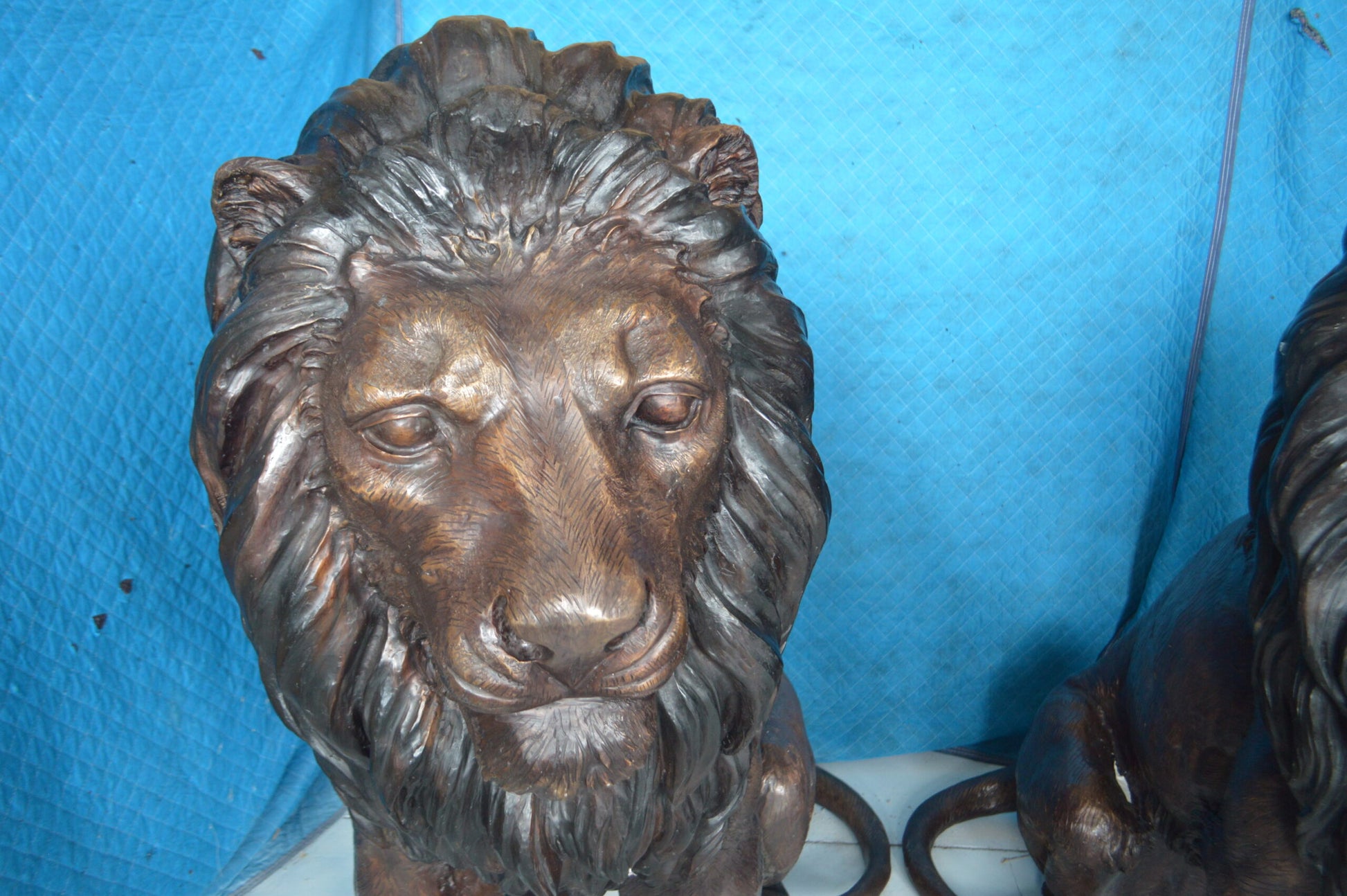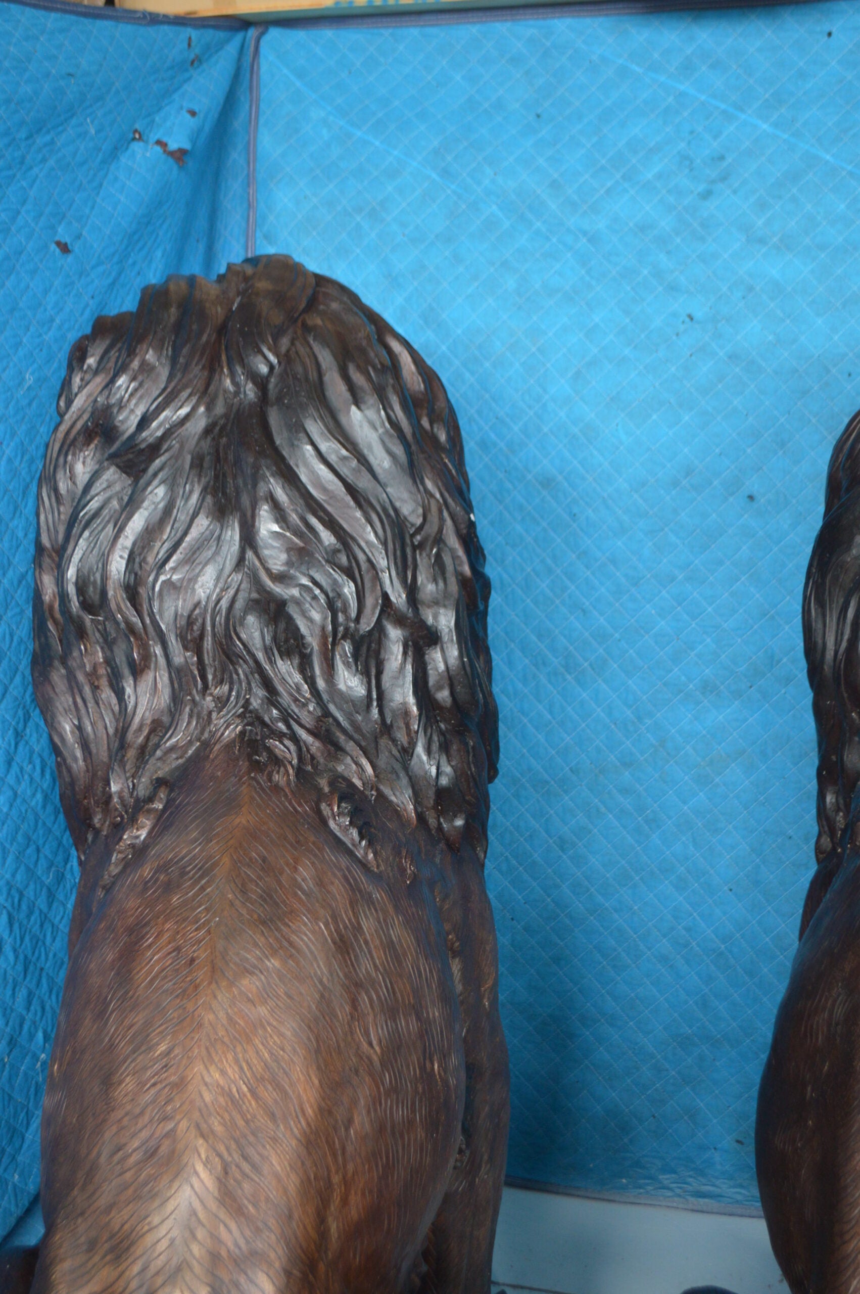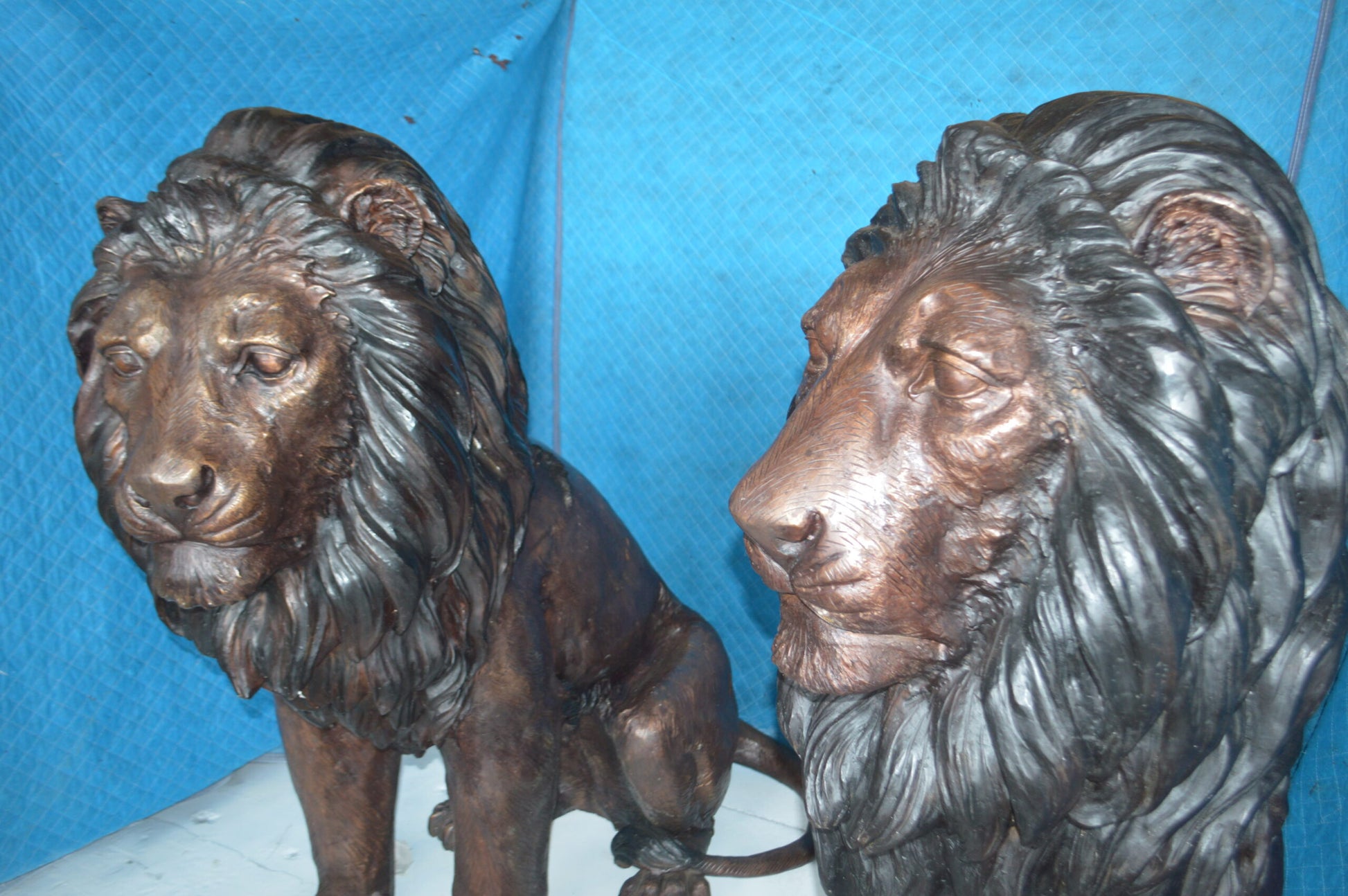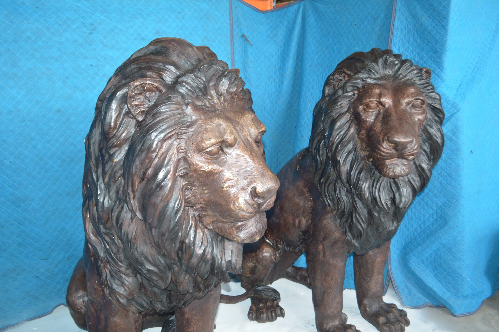 Pair of life size lion bronze statues - Size: 55"L x 28"W x 60"H.