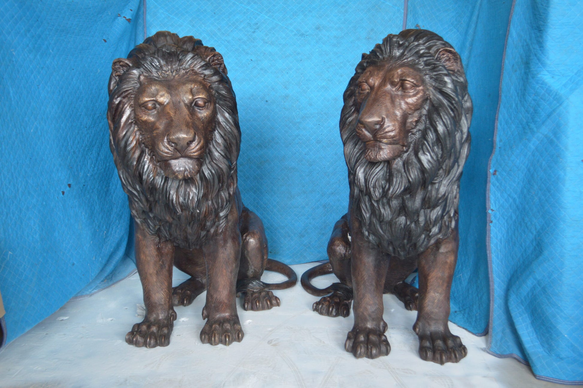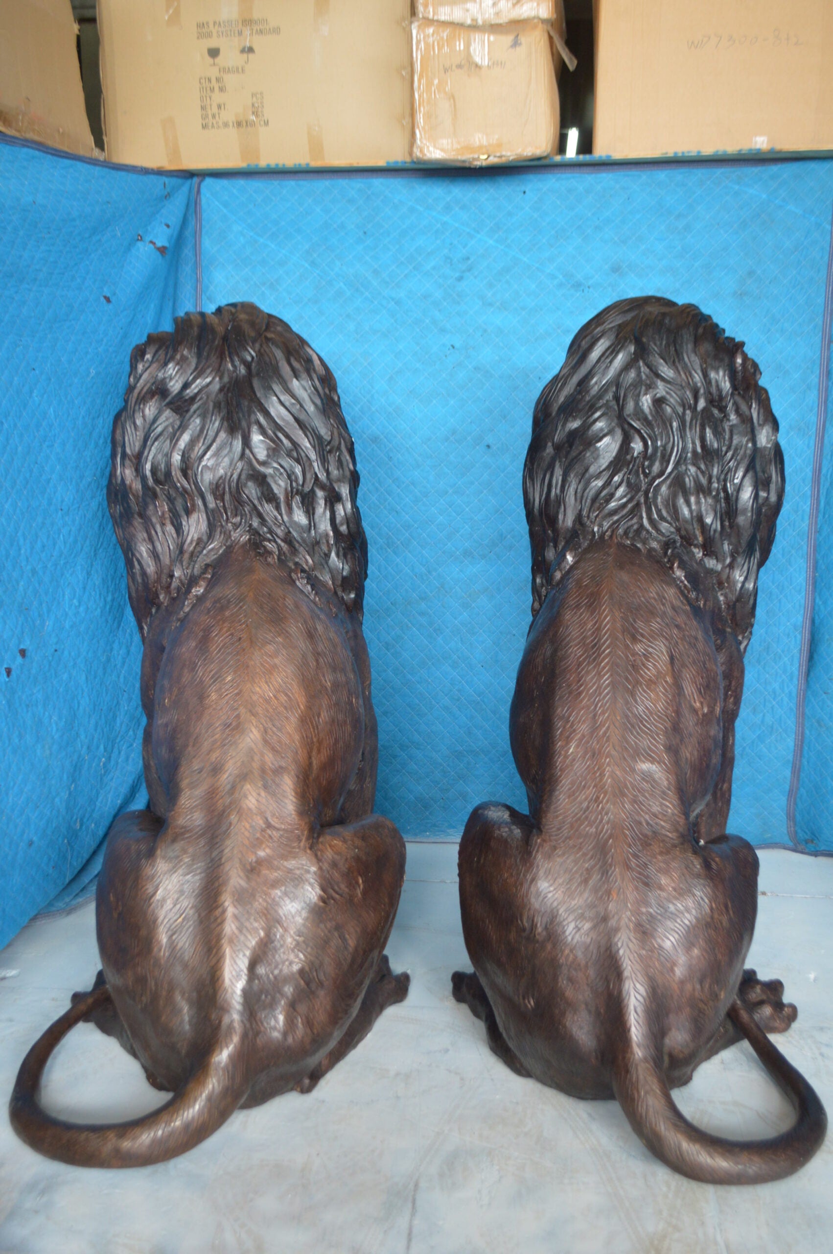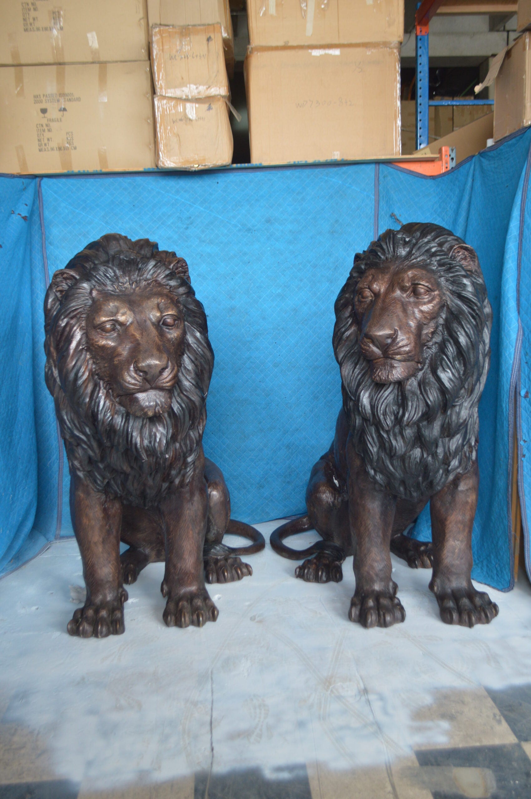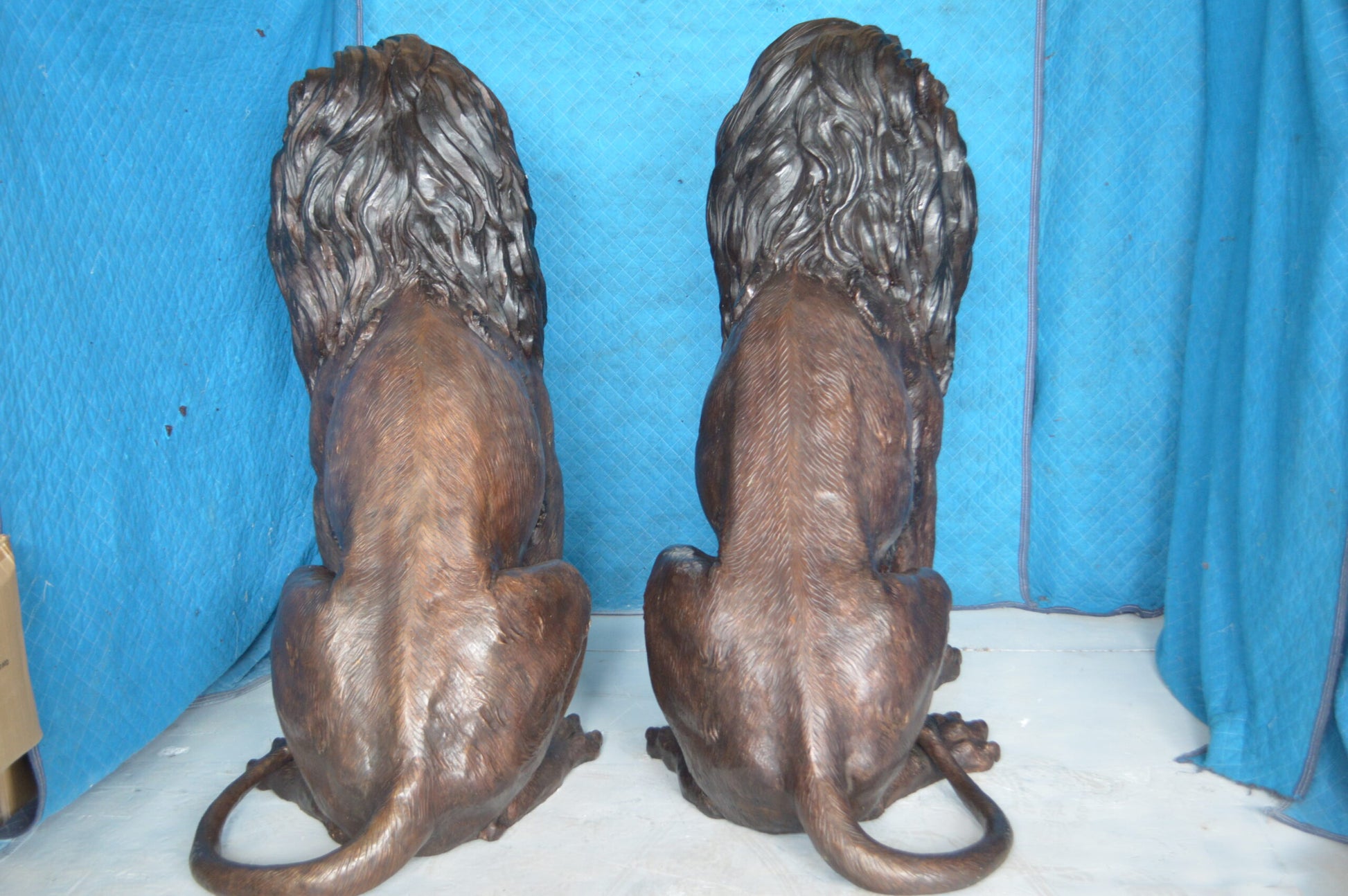 Pair of life size lion bronze statues - Size: 55"L x 28"W x 60"H.
