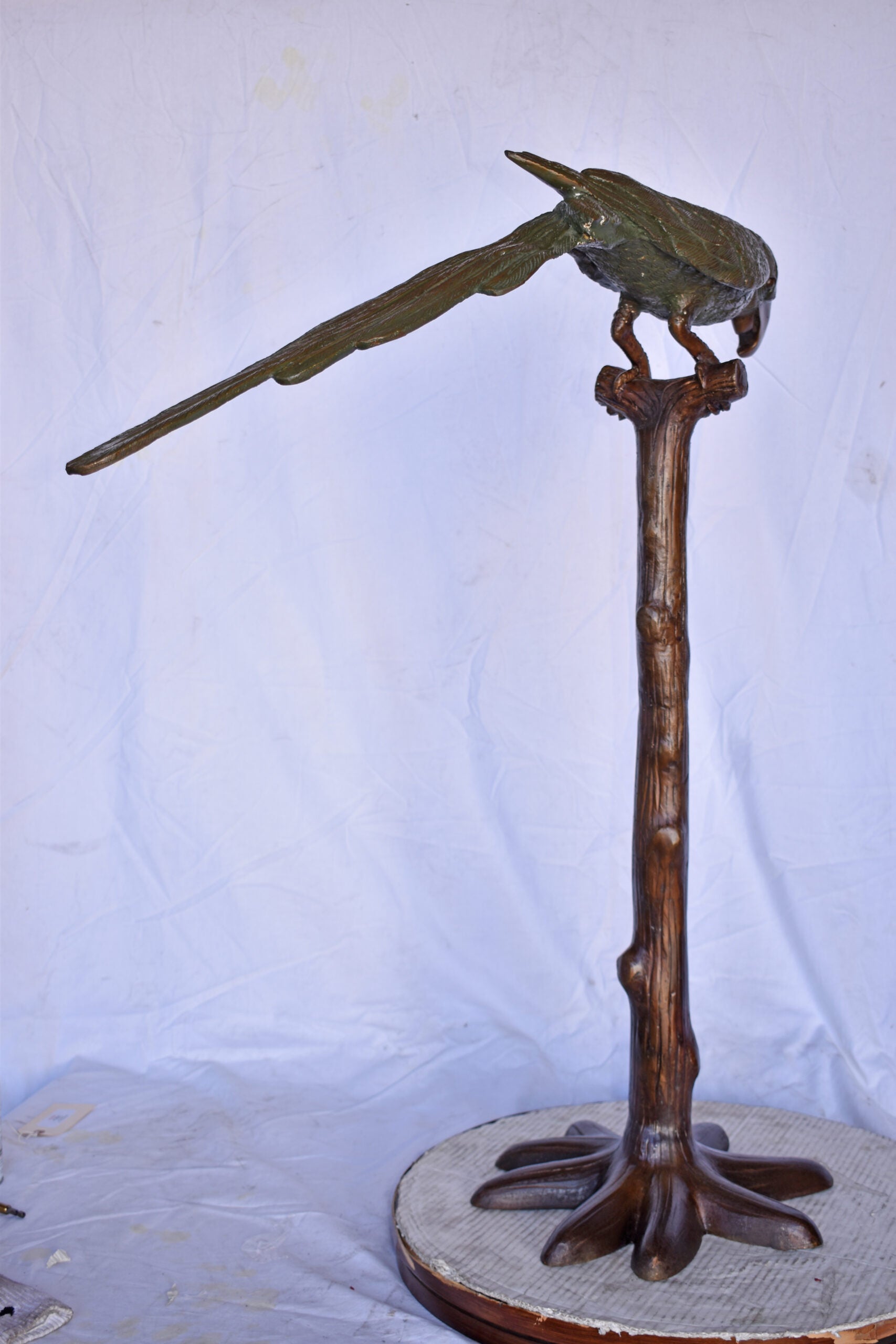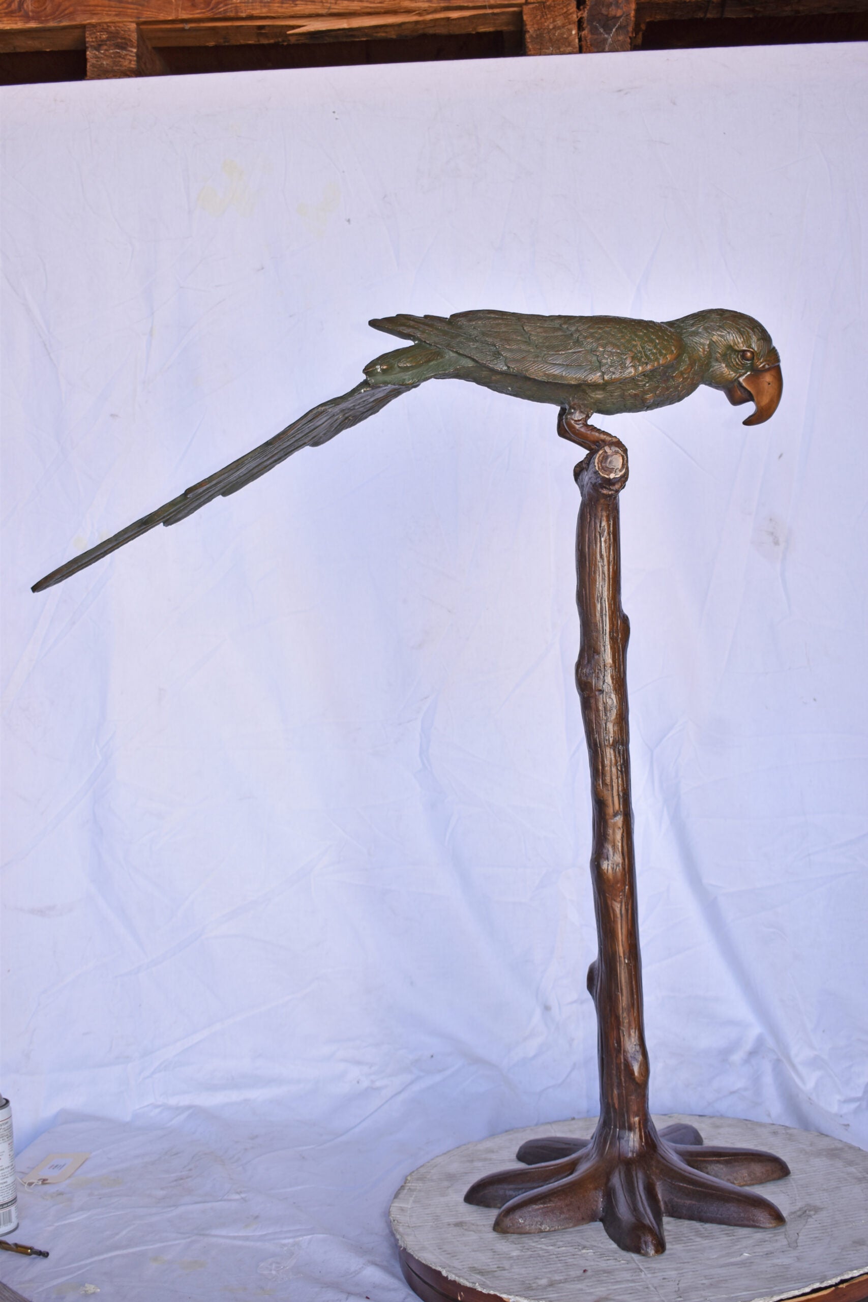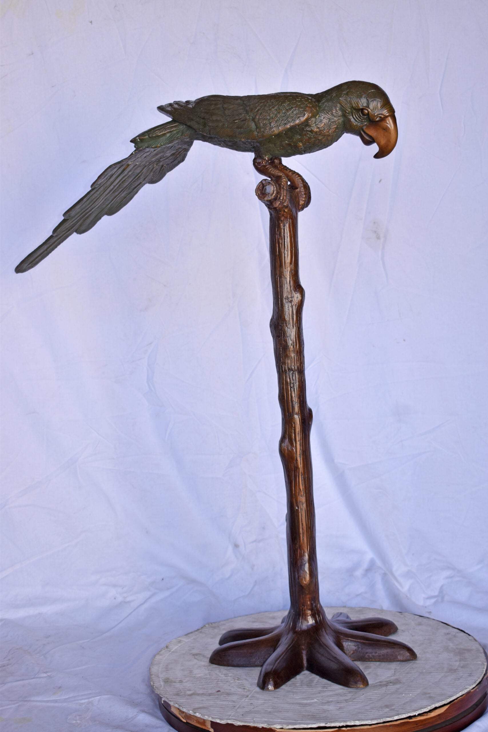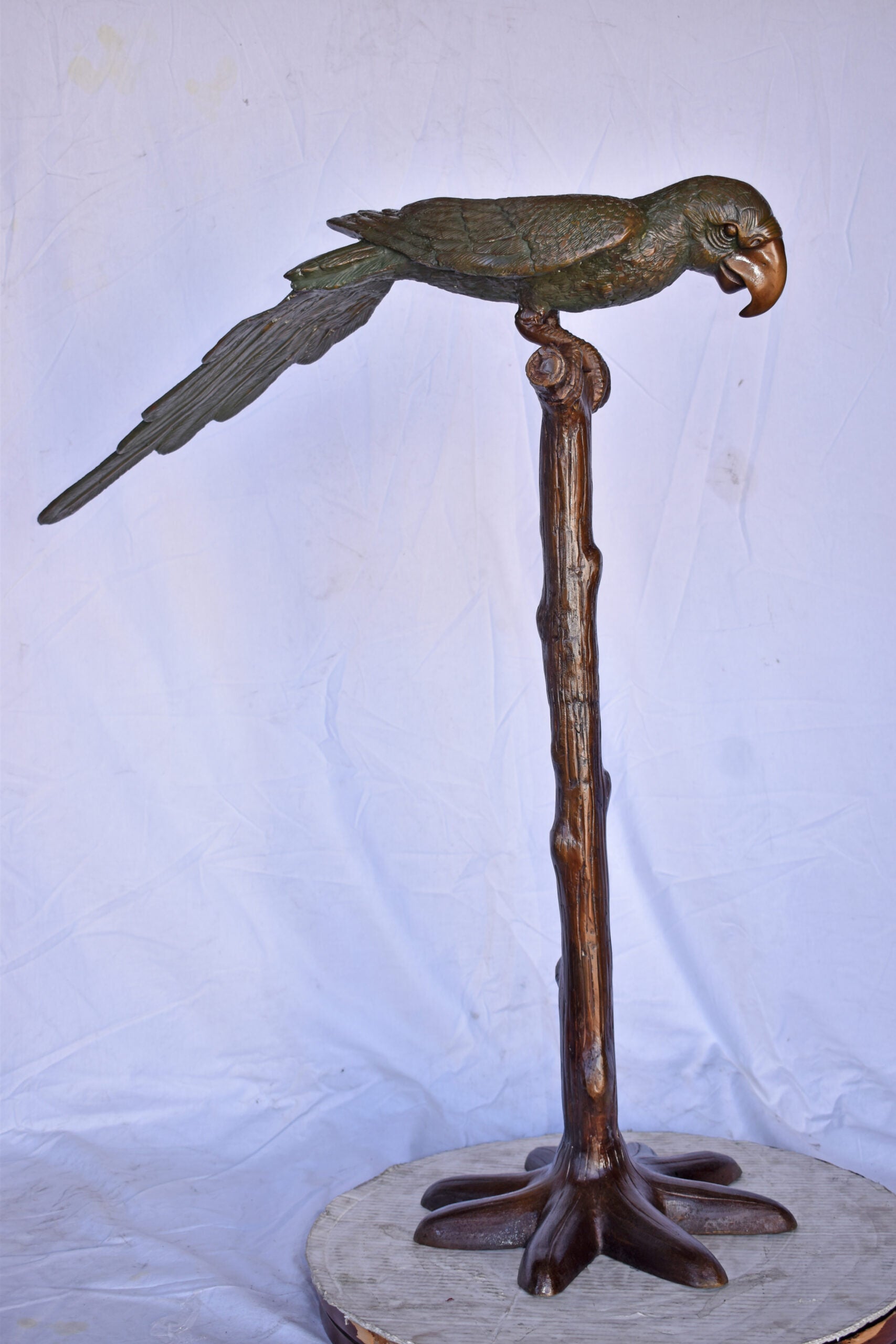 Parrot on a Tree Watching Forward Bronze Statue - Size: 36"L x 15"W x 41"H.