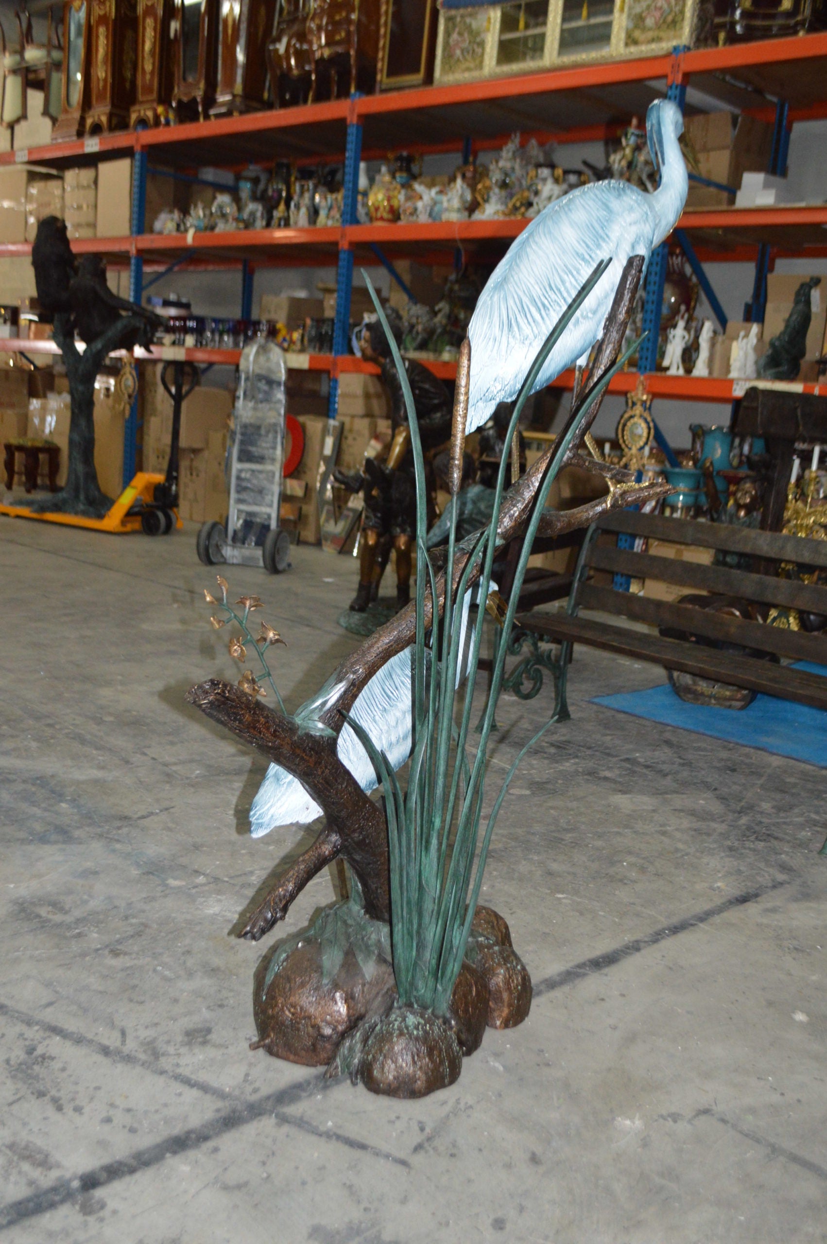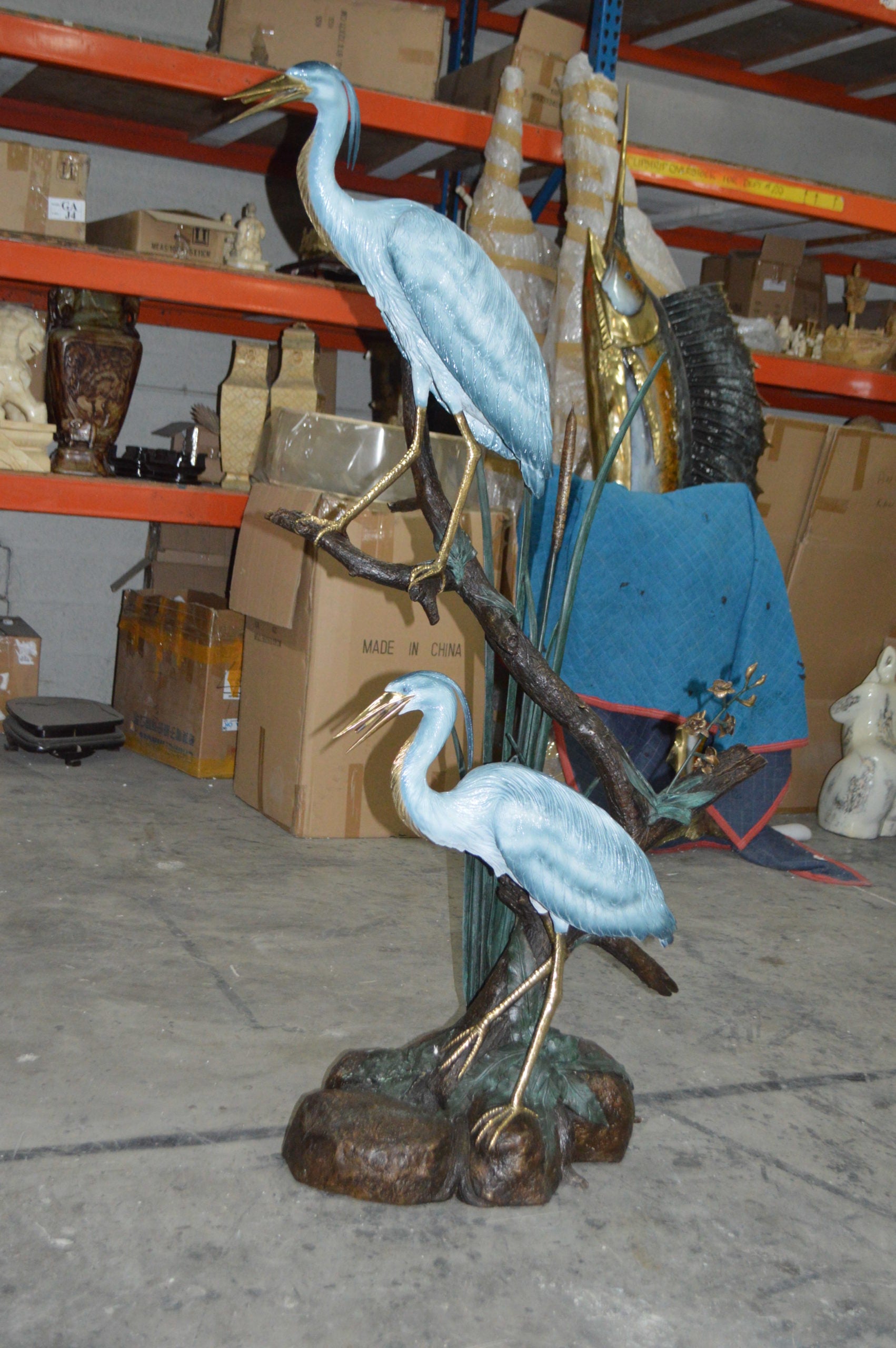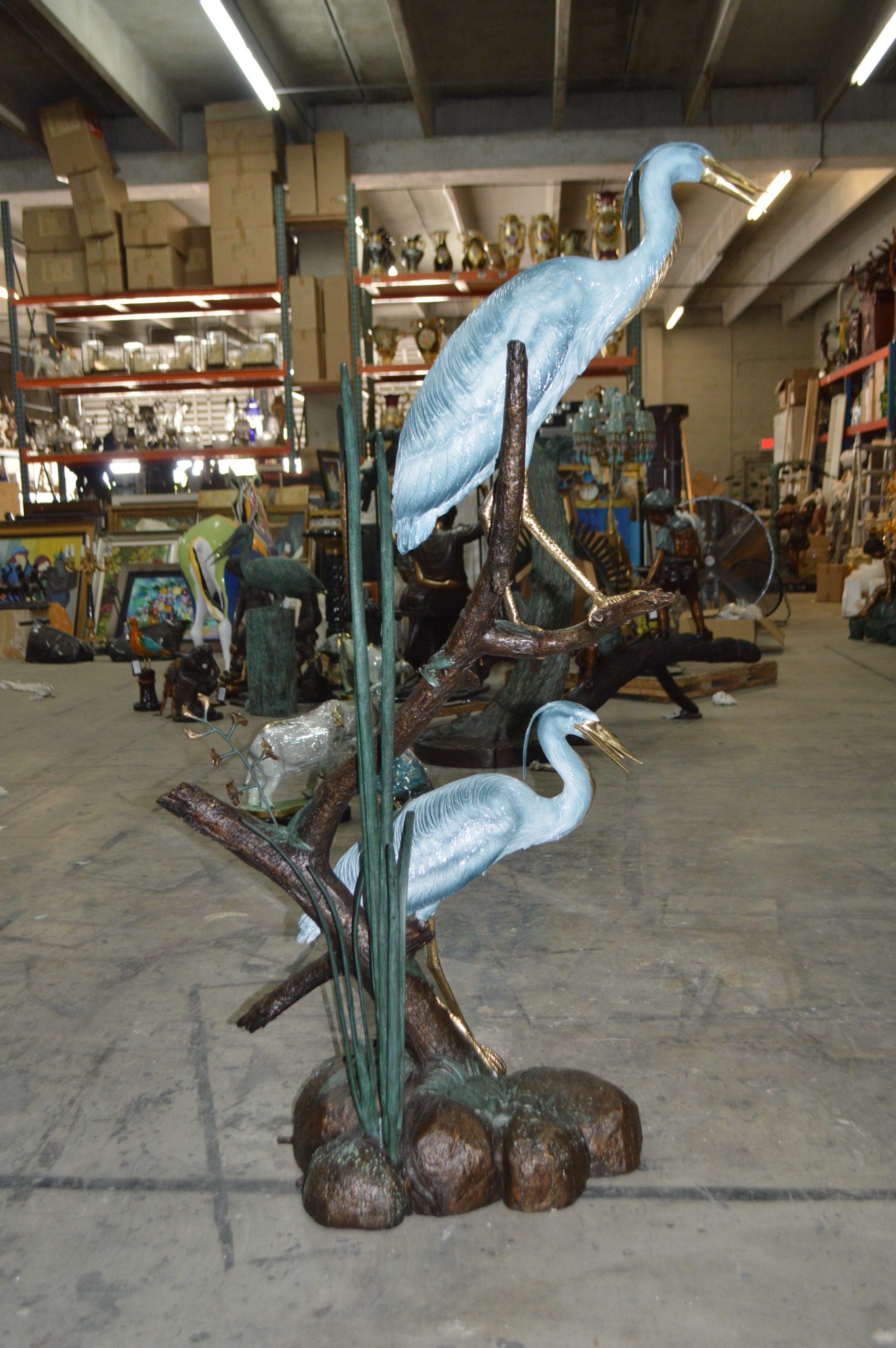 Two Large Cranes Fountain Bronze Statue - Size: 36"L x 21"W x 64"H.
