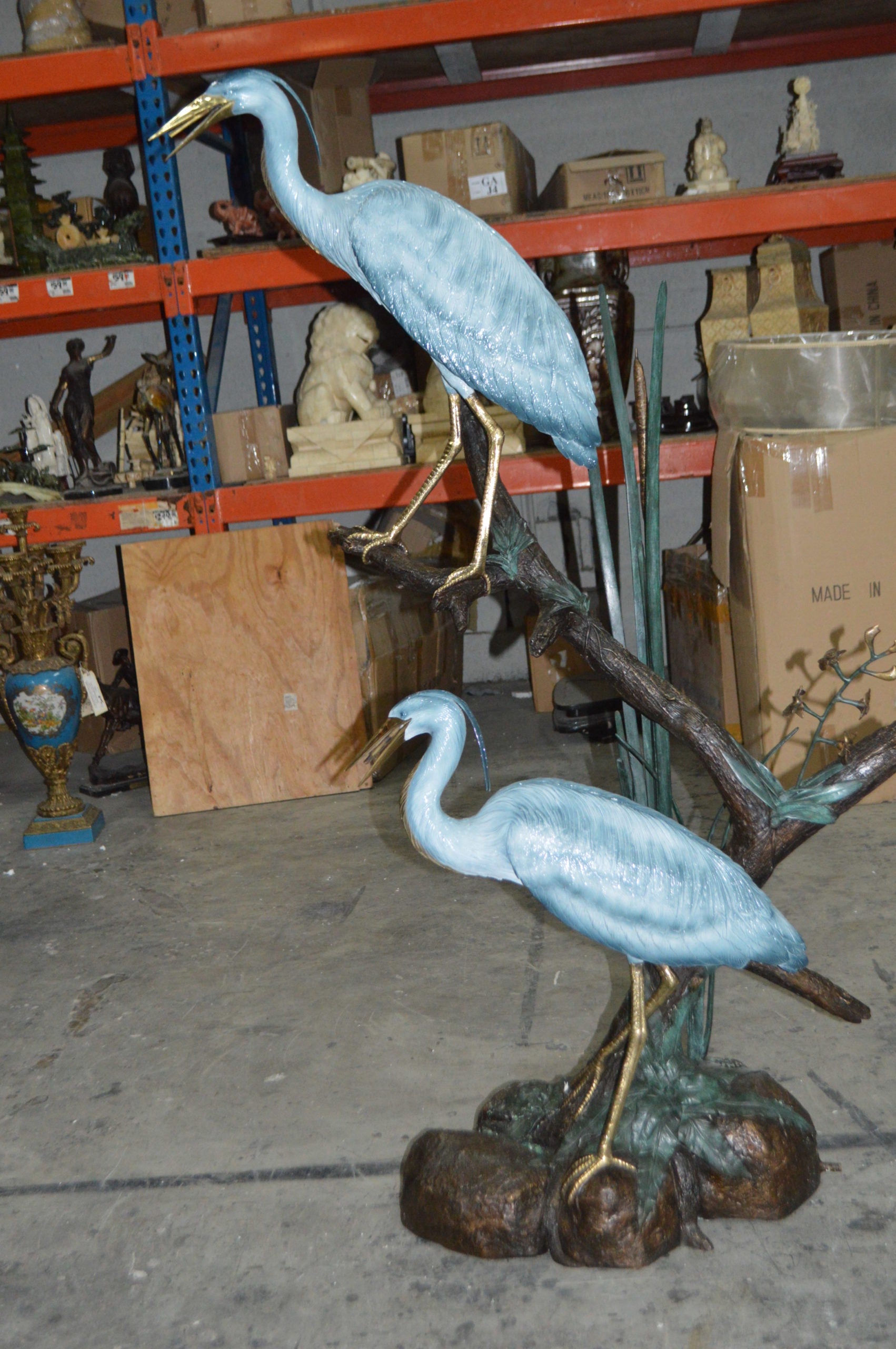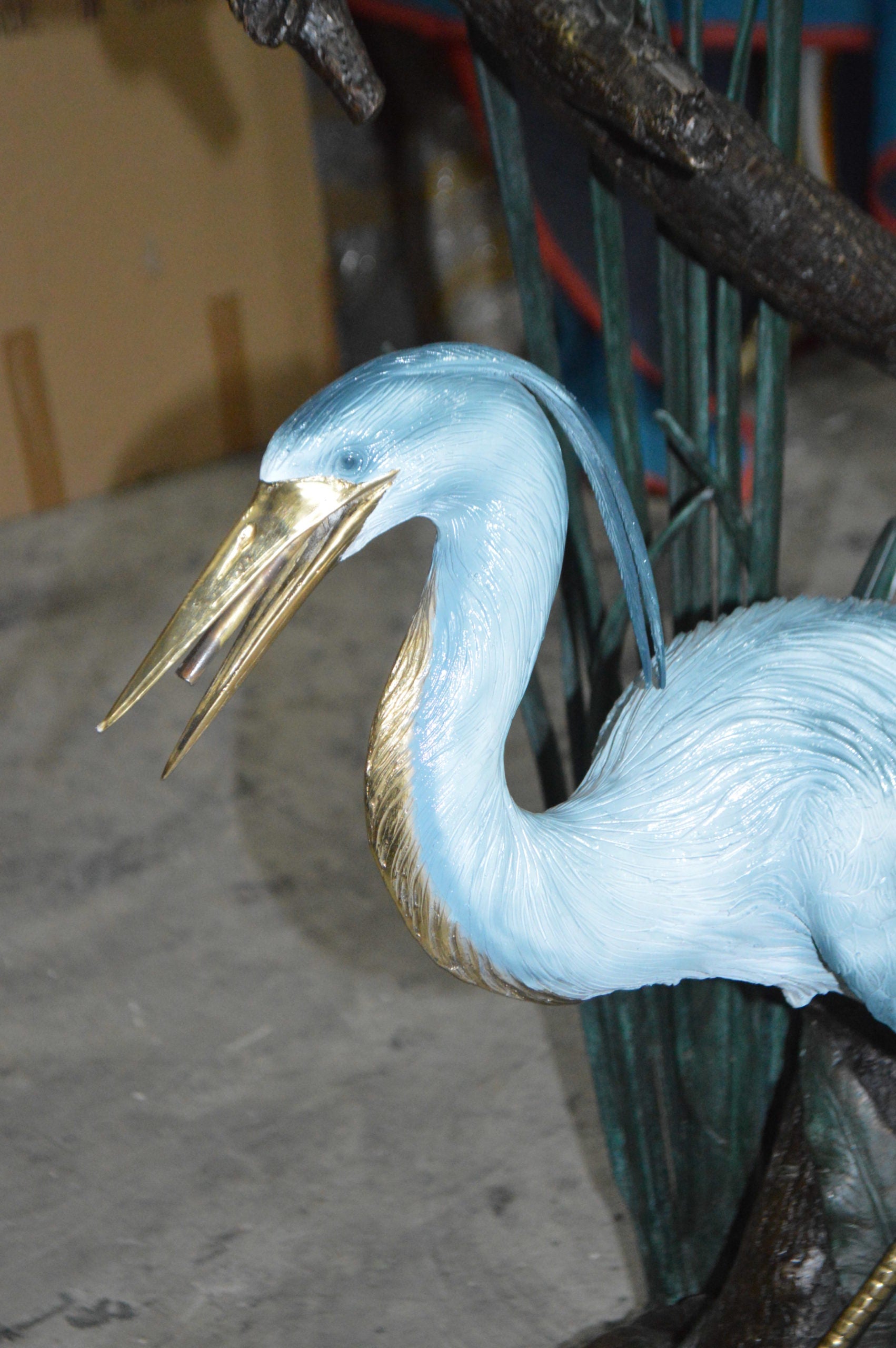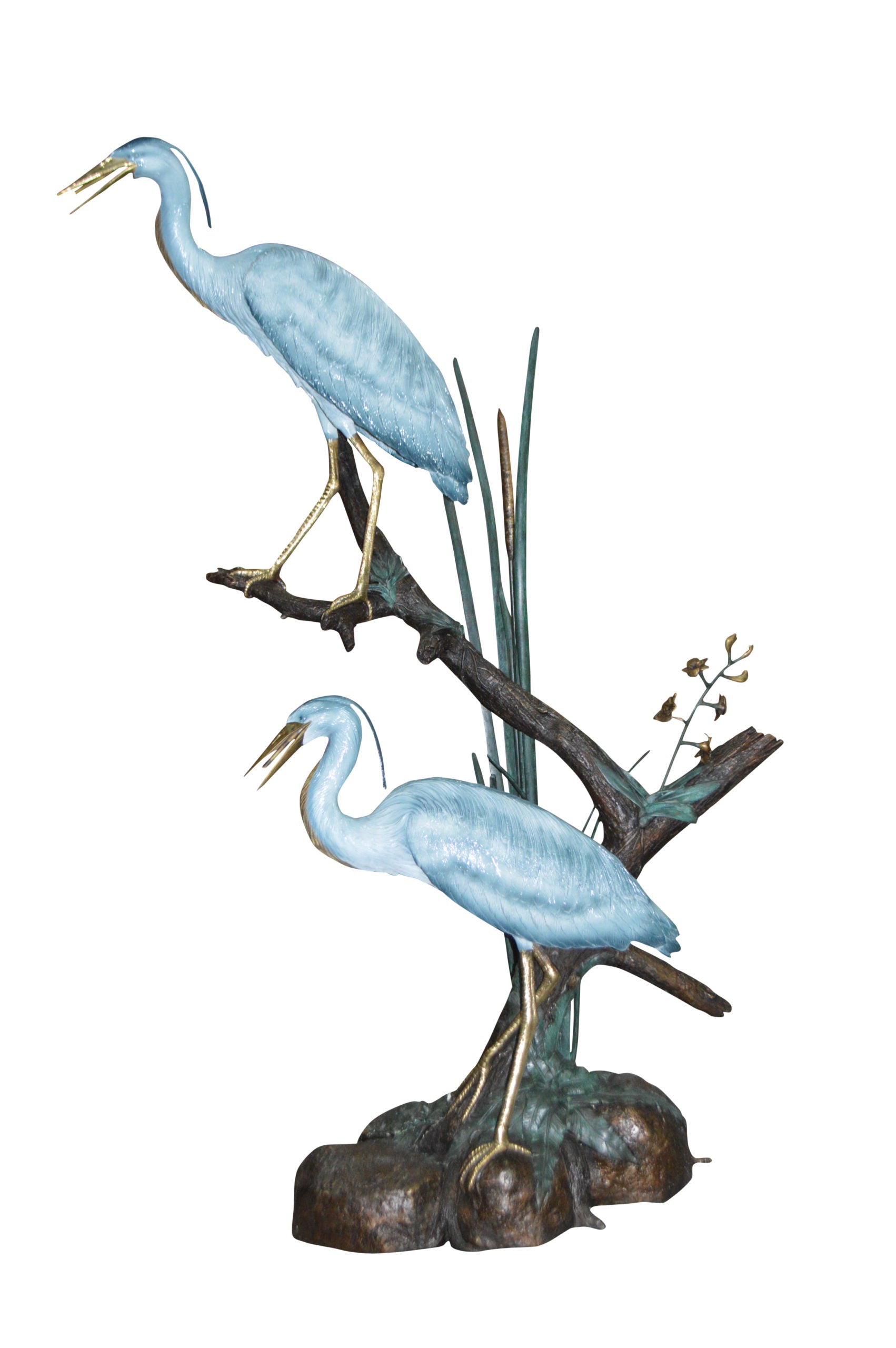 Two Large Cranes Fountain Bronze Statue - Size: 36"L x 21"W x 64"H.