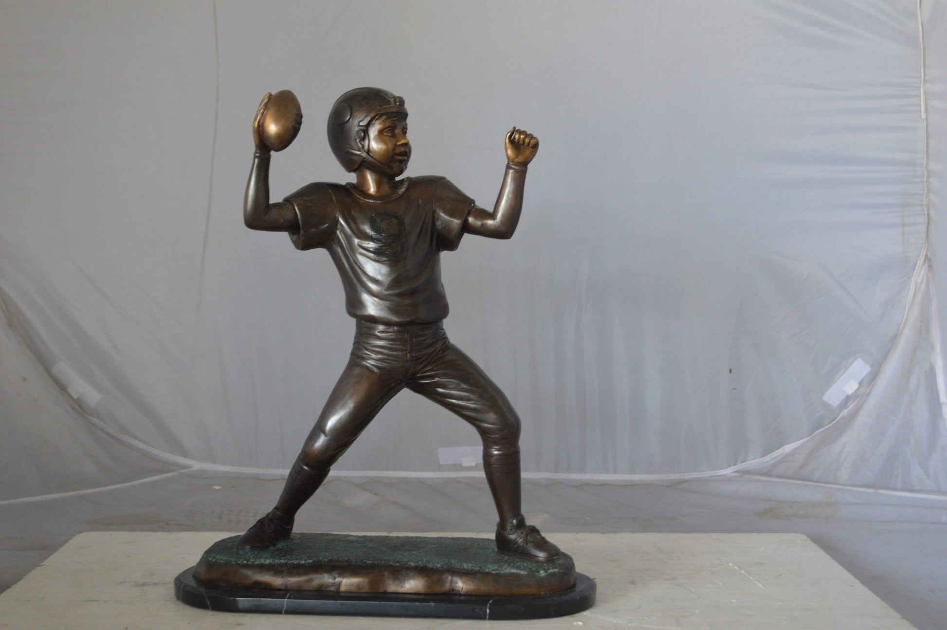 Young Quarterback bronze statue - Size: 14"L x 6"W x 20"H.