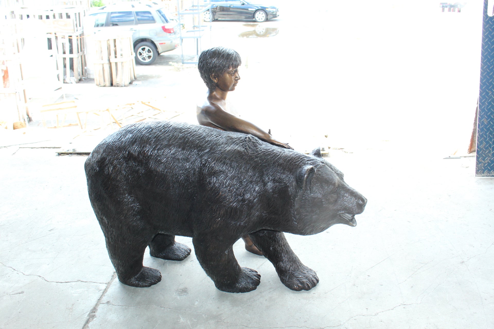 A bear with a boy bronze statue - Size: 39"L x 24"W x 32"H.