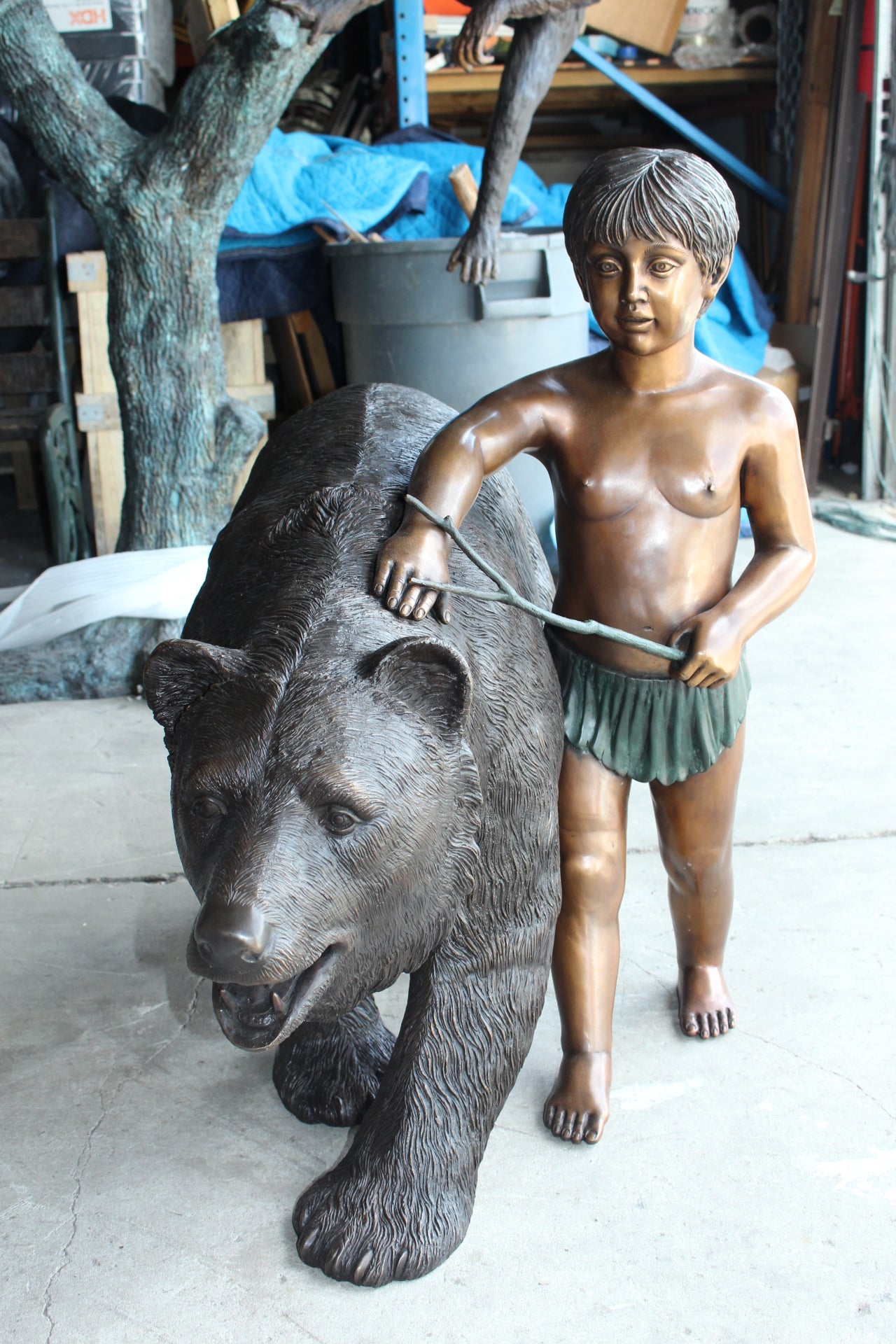 Life size Bronze Statue of a young village boy walking with a bear! He very clearly has a strong relationship with the animal. This statue is great for anybody with a respect for nature and the natural world. Hand Crafted design with an extraordinarily realistic appeal; lasting luster material for all sorts of outdoor decor concepts. Size: 39"L x 24"W x 32"H. Weight is: 120Lb