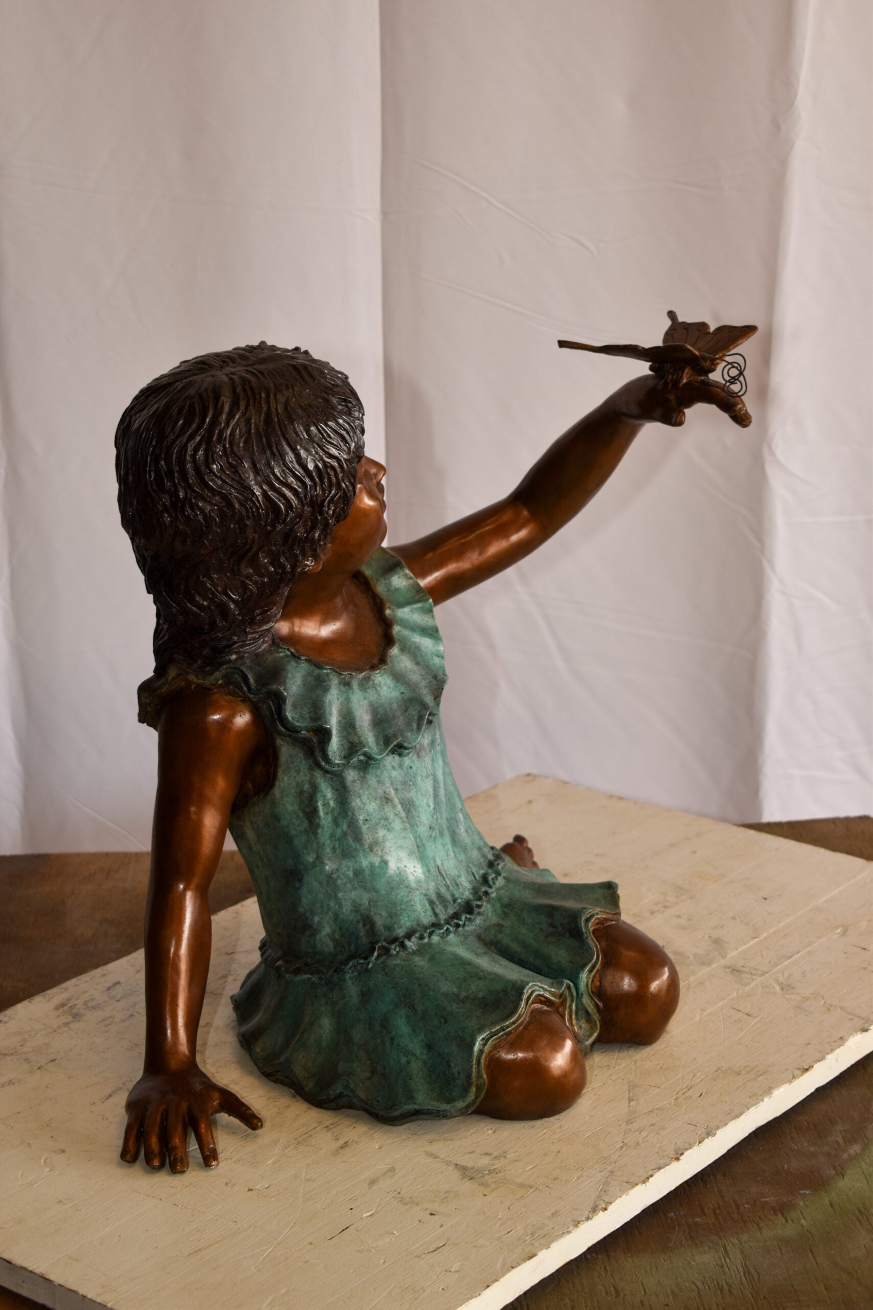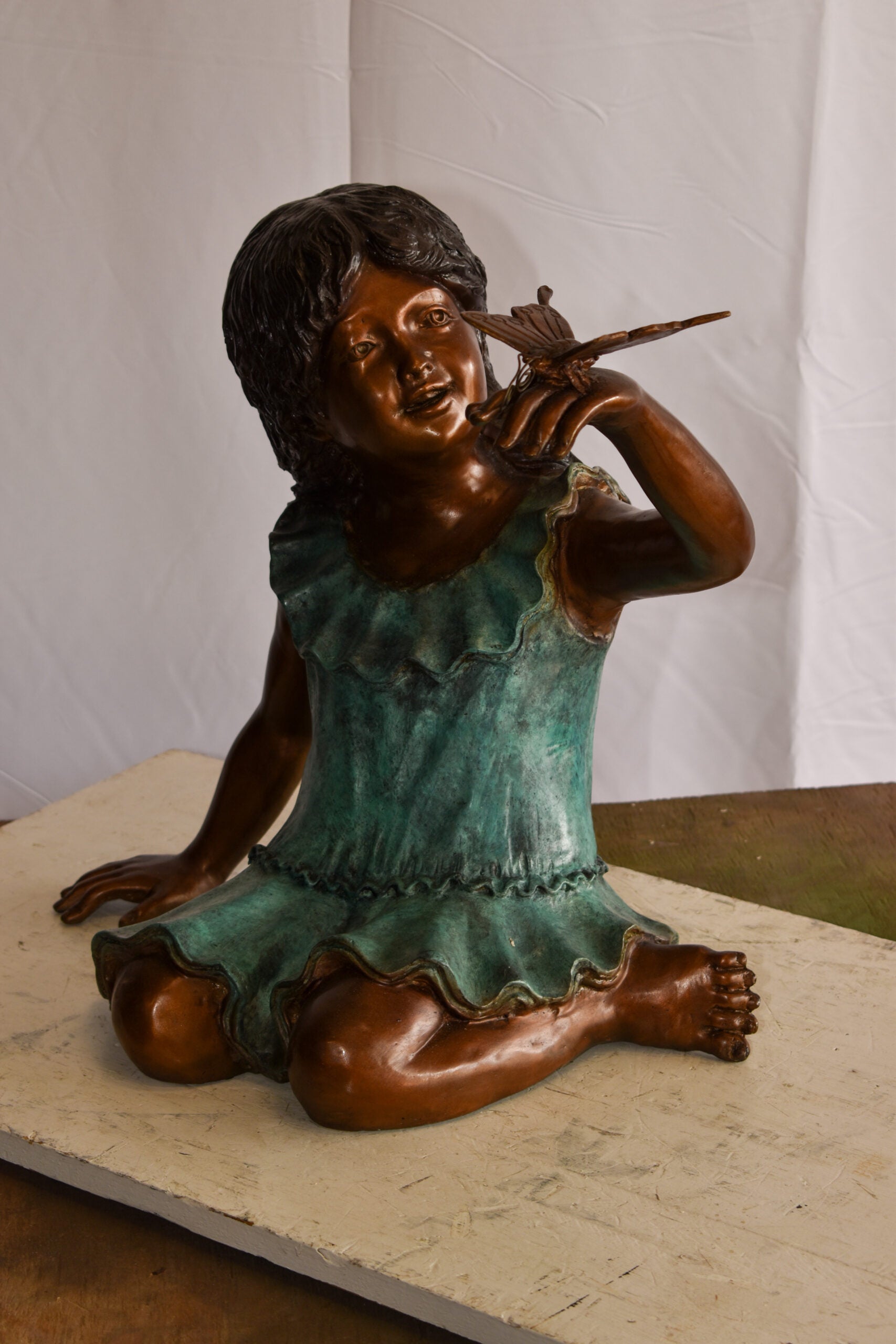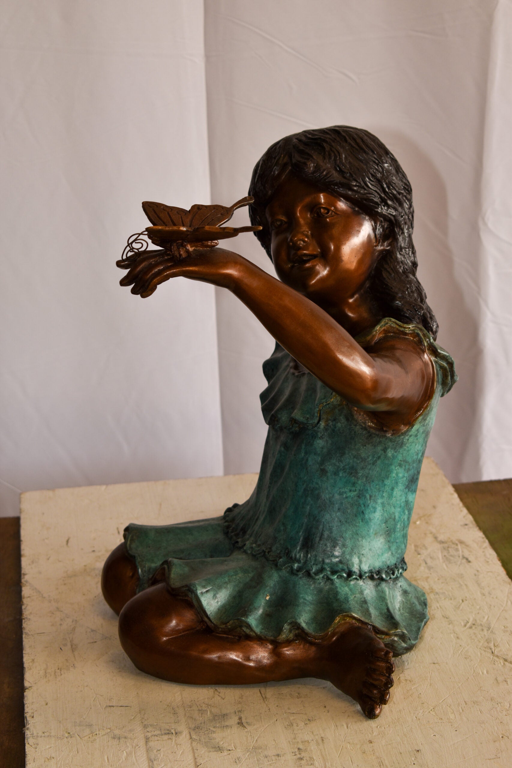 A Little Girl Playing with a Buterfly Bronze Statue 21" x 15" x 19"H