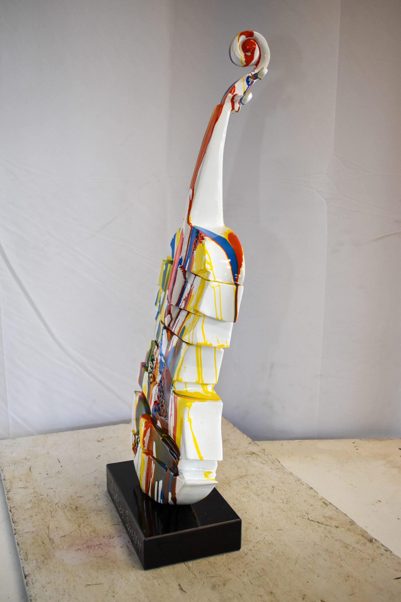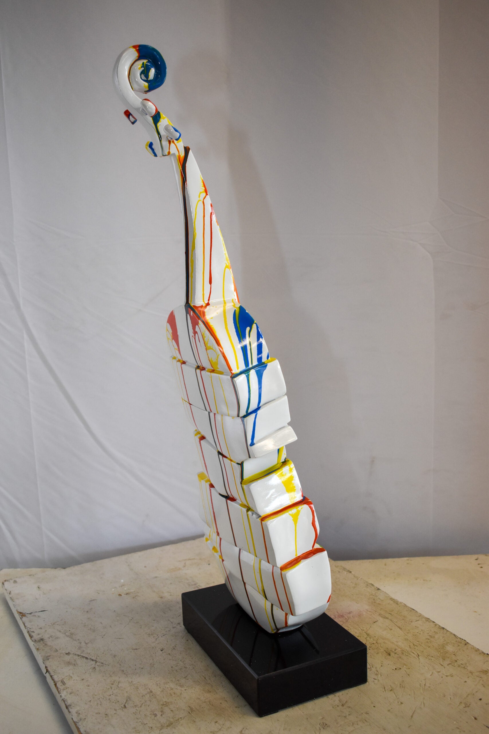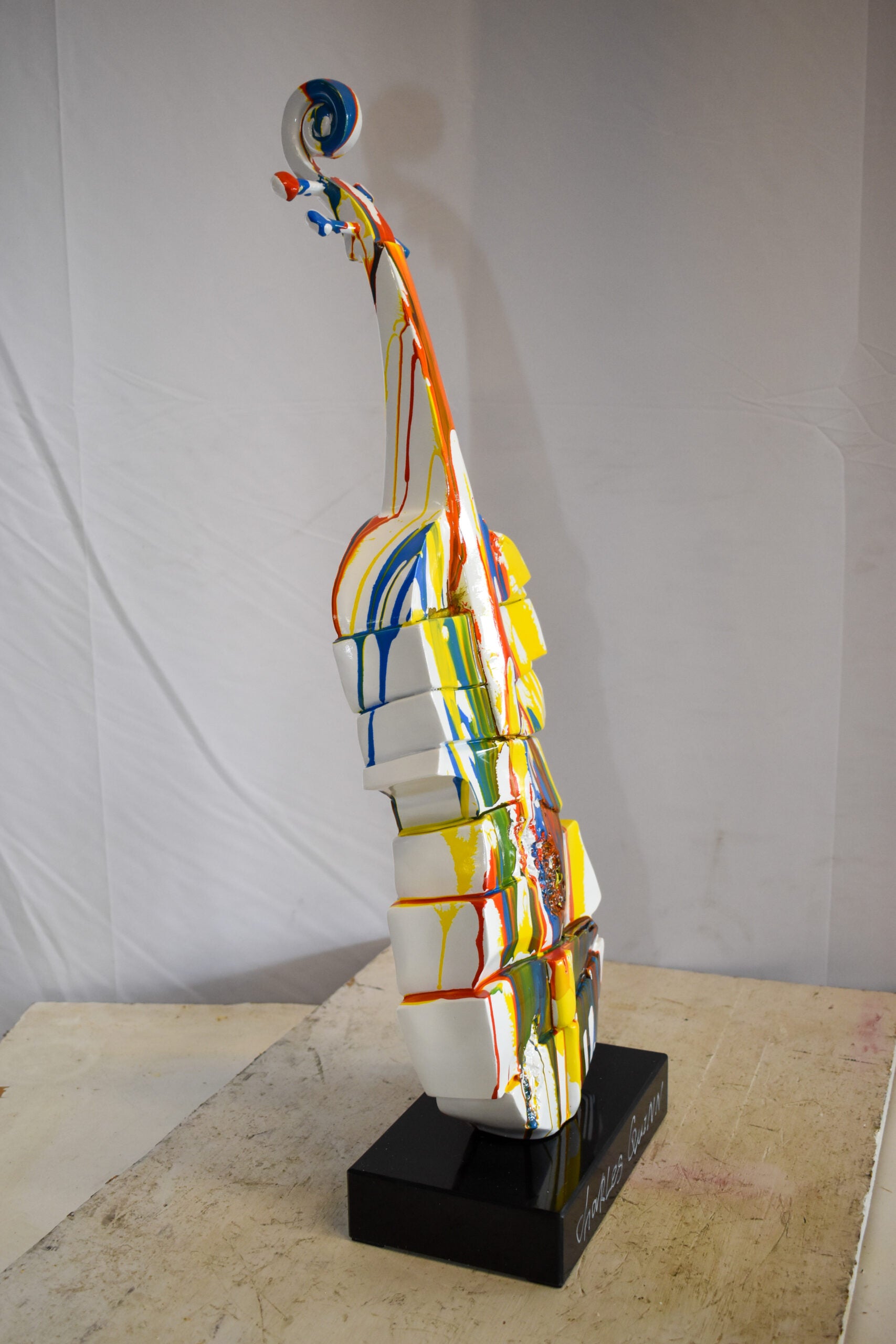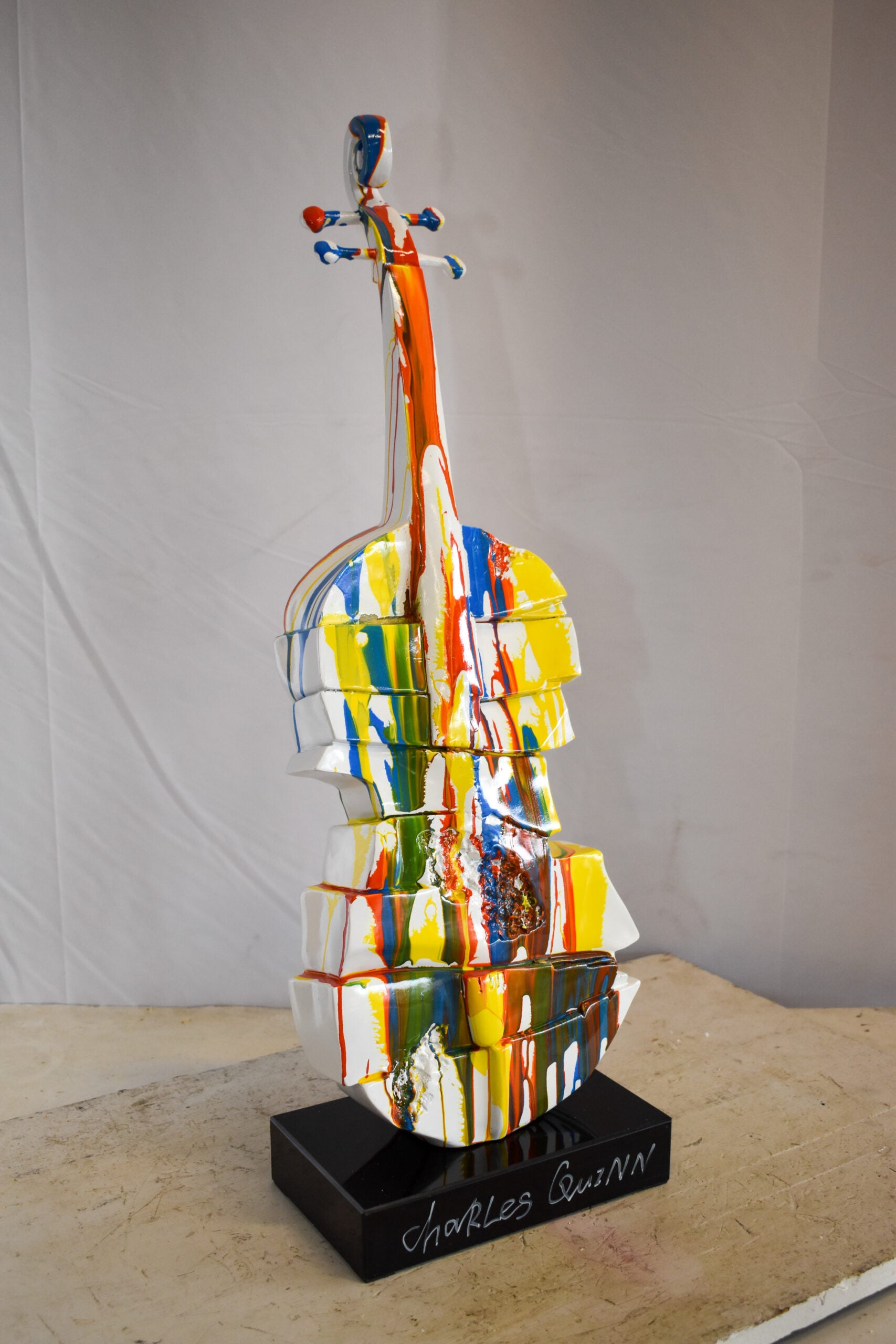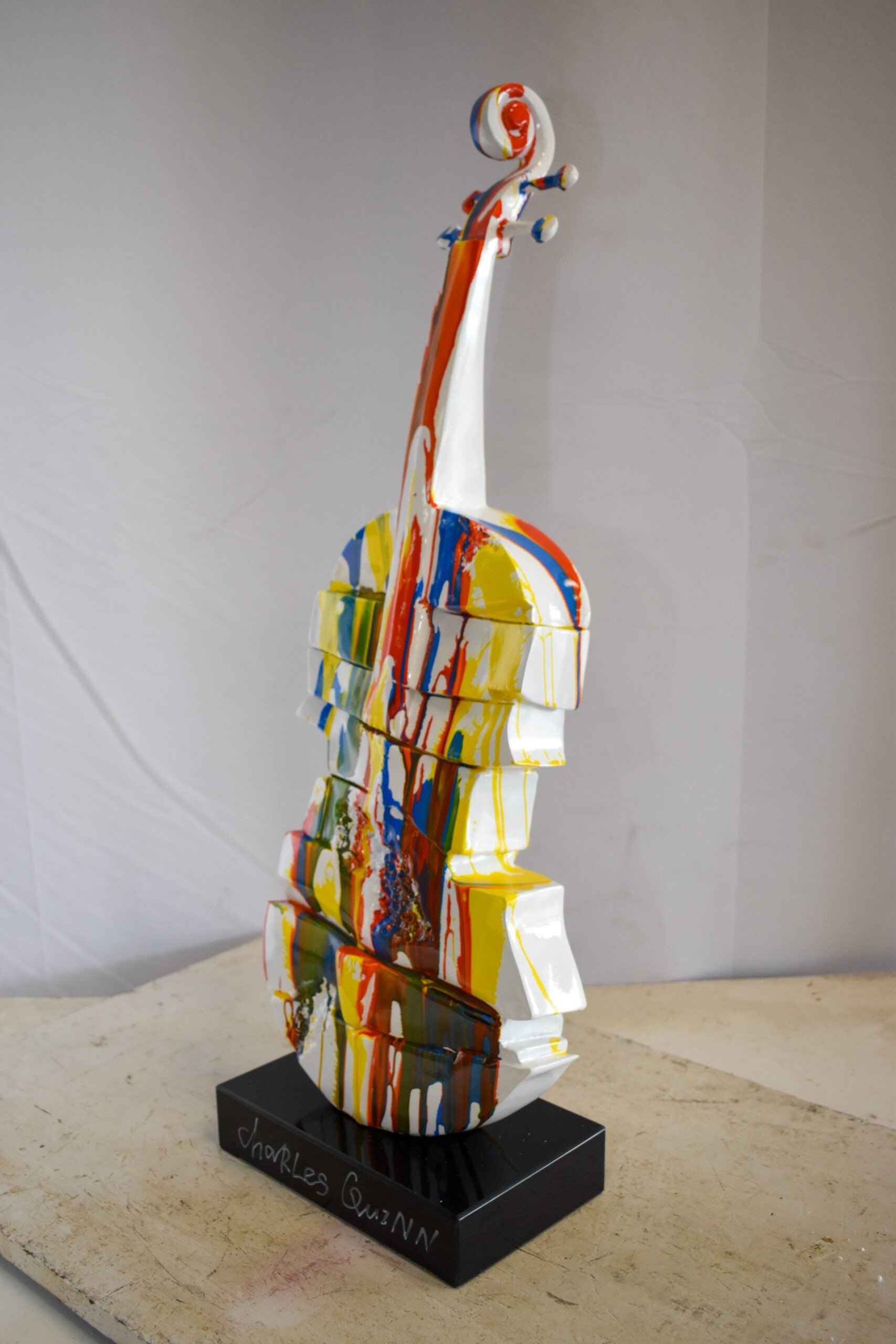 If you are looking for a piece of true artistic beauty, combined with color and creativity, then this statue of a cello is for you. The artist combines a splatter paint effect with a black base to bring both color and sophistication to your space. Size: 10"L x 12"W x 30"H. Weight is: 13Lb