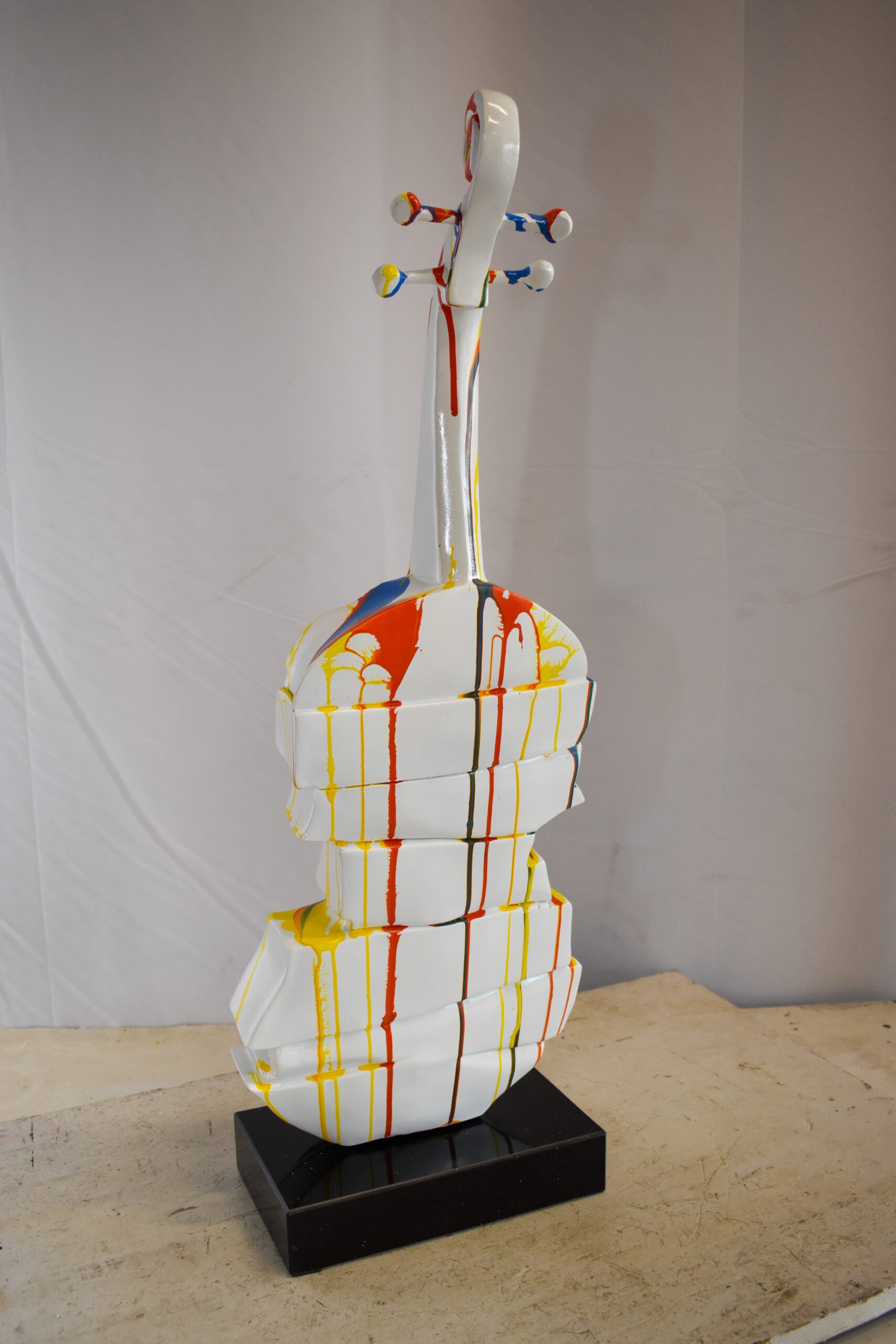 Artistic Graffiti Colored Cello on Black Base Resin Statue 10" x 12" x 30"H
