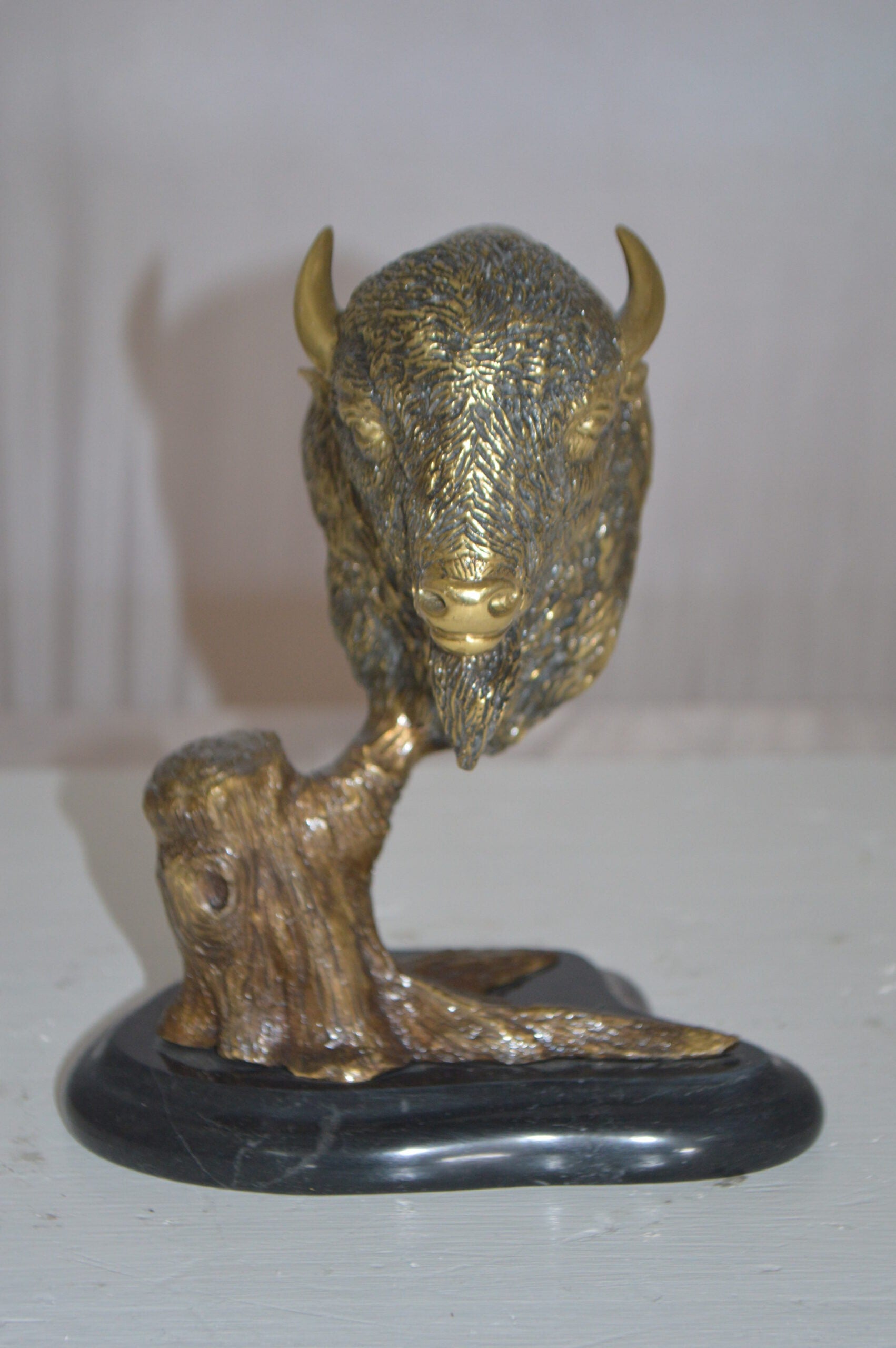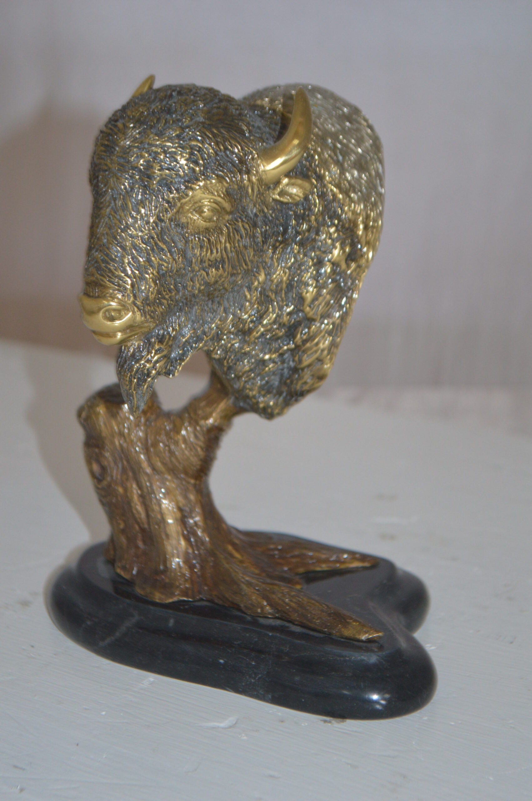 Bison Head Bronze Statue - Size: 8"L x 5"W x 9"H.