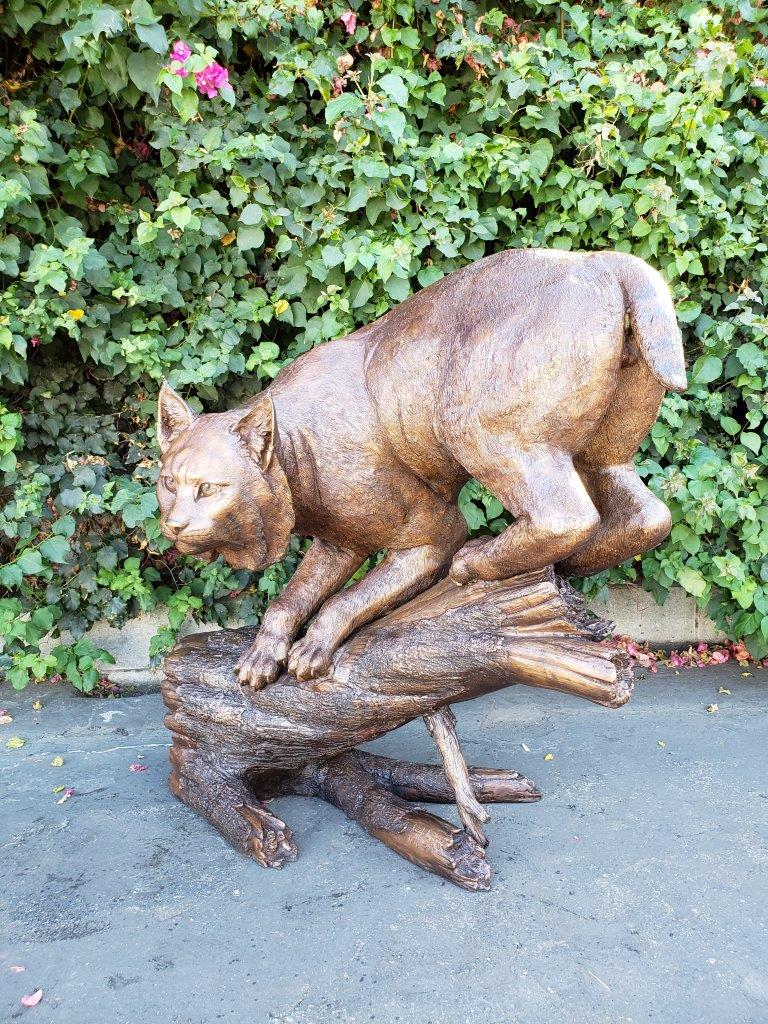 SKU:BobcatGoingDownaTreeLogBronze2103