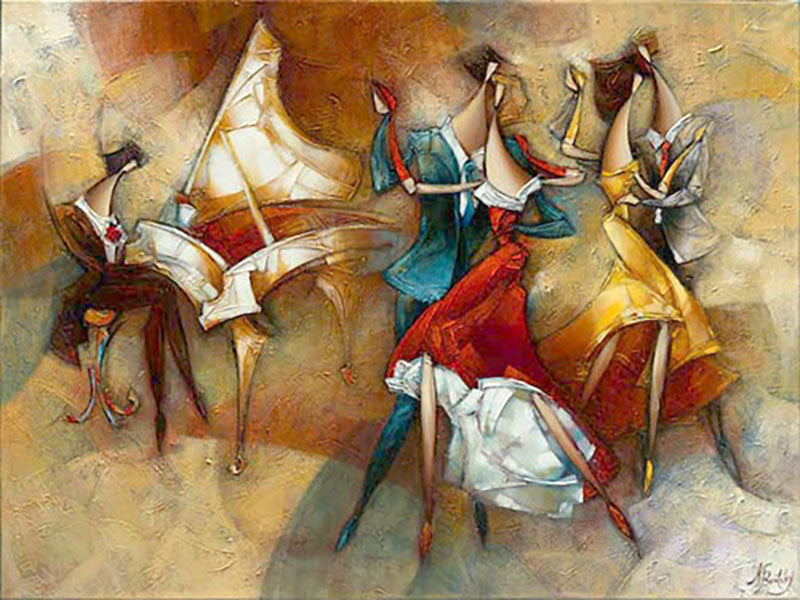 Dance All Night 2, A Wall Art Painting by Nathan Brutsky, limited edition giclee on canvas. Nathan Brutsky was born in 1963 in Kiev, Ukraina. Since childhood he was engaged in different aspects of art: painting, sculpture and art-design. Nathan graduated Art School and Kiev College of Industrial design. Signed and numbered. This art comes roll. Image Size: 48x36.
