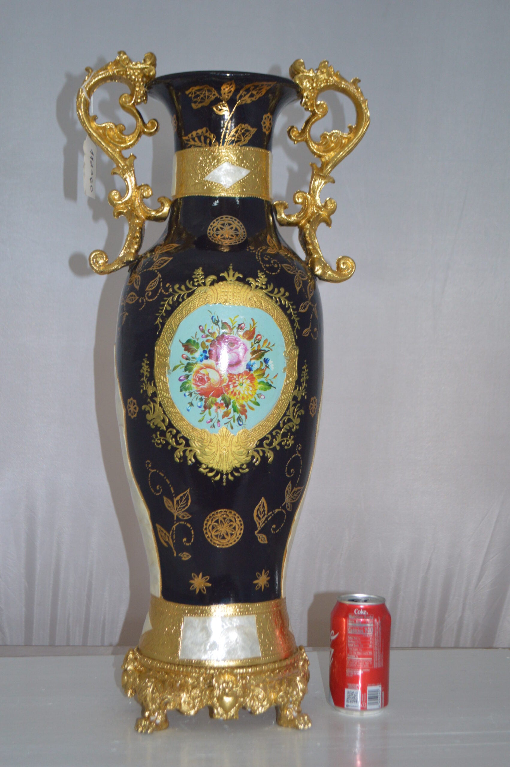 Decoration Vase Blue and Gold - Size: 13"L x 9"W x 28"H.