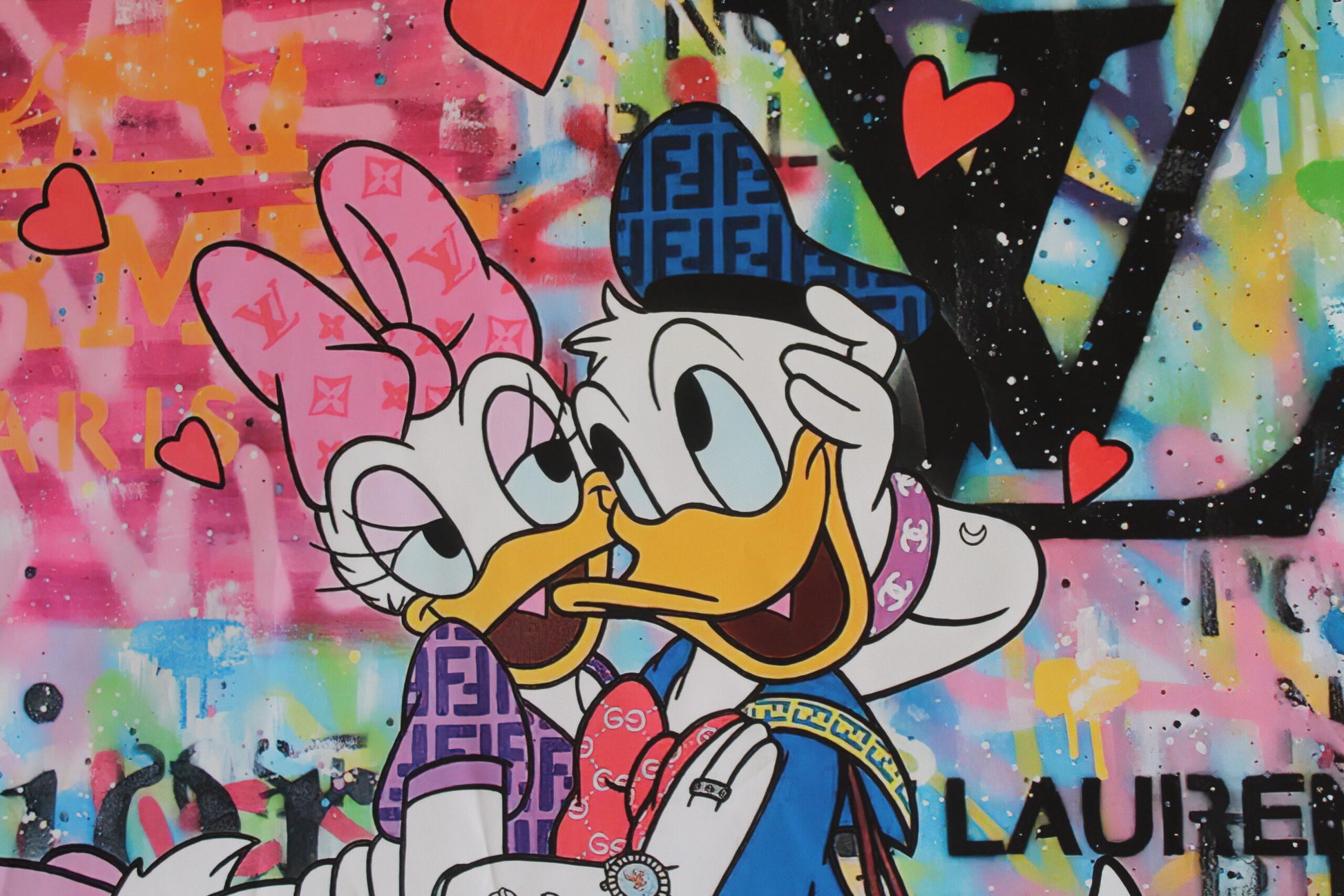 Donald and Daisy Duck Luxury Brand Backdrop Unframed Canvas Painting 54 x 54