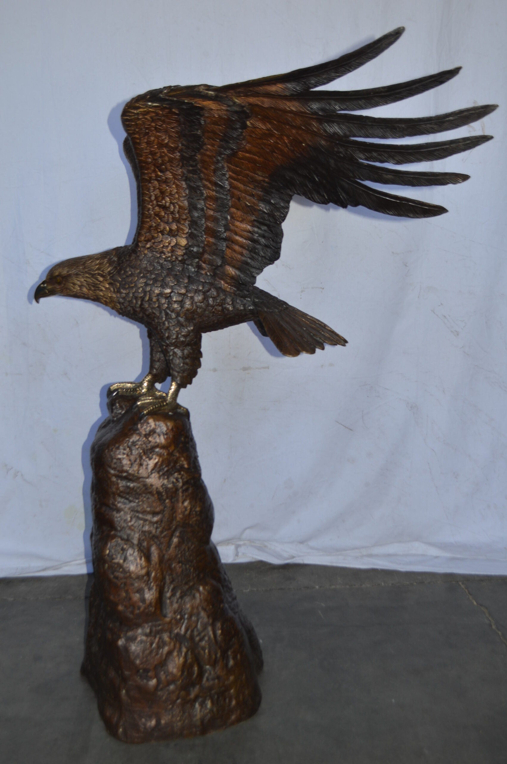 Eagle Landing on a Rock Bronze Statue - Size: 51"L x 36"W x 58"H.