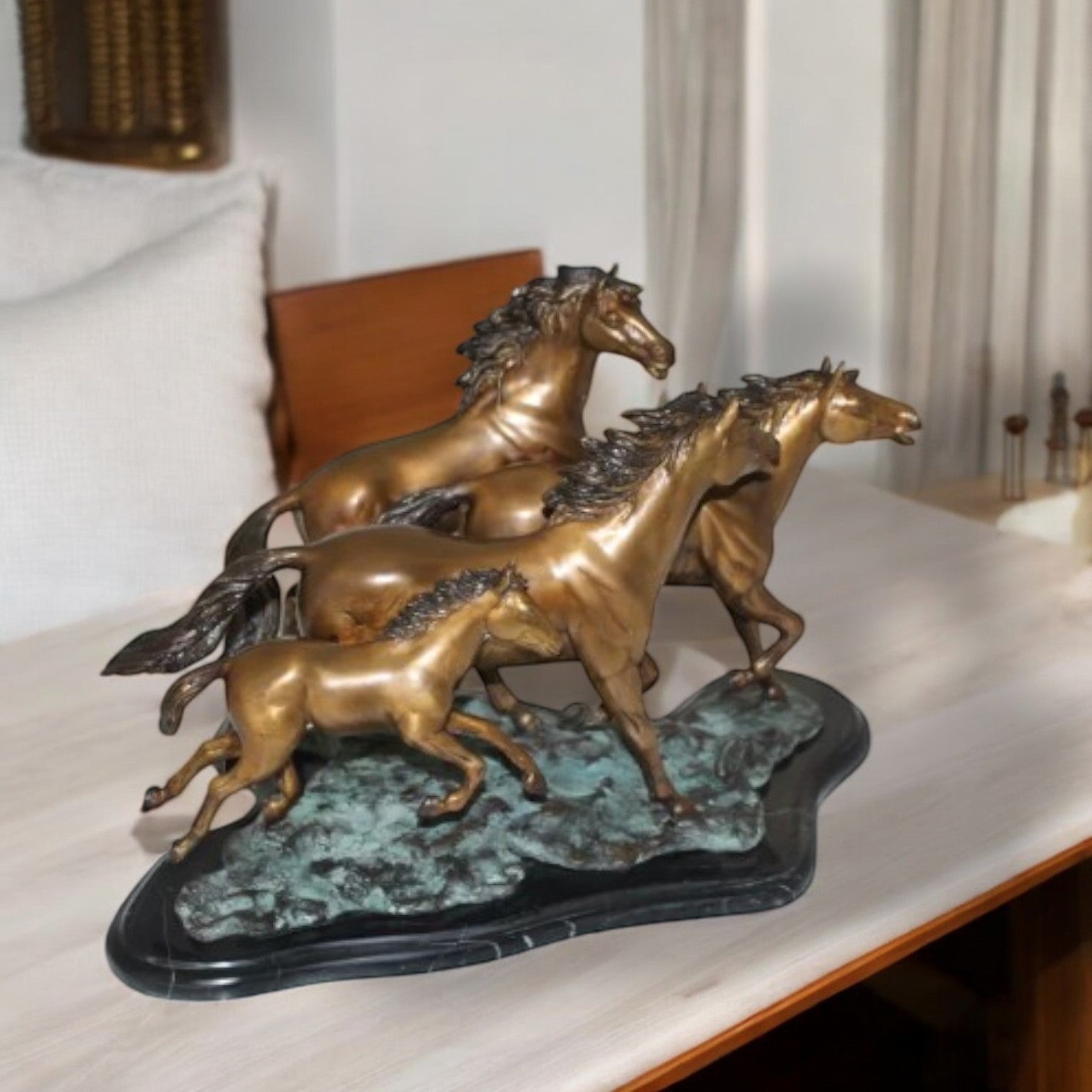Four horses running Bronze Statue - Size: 20"L x 14"W x 12"H.