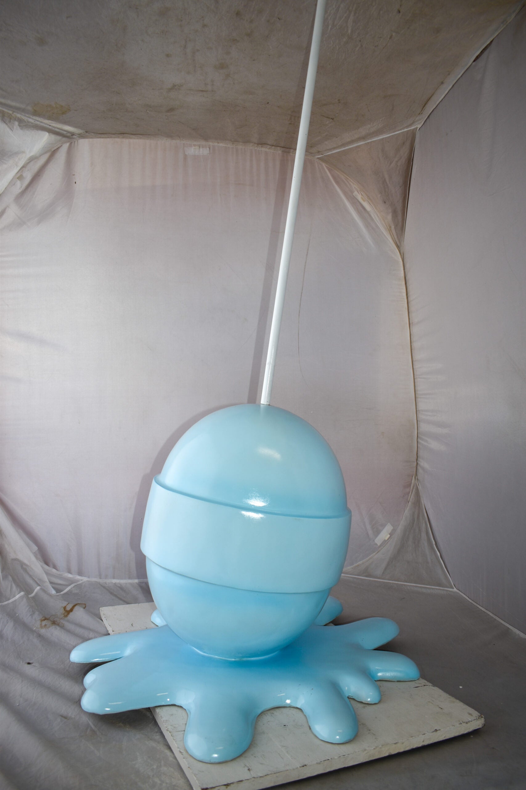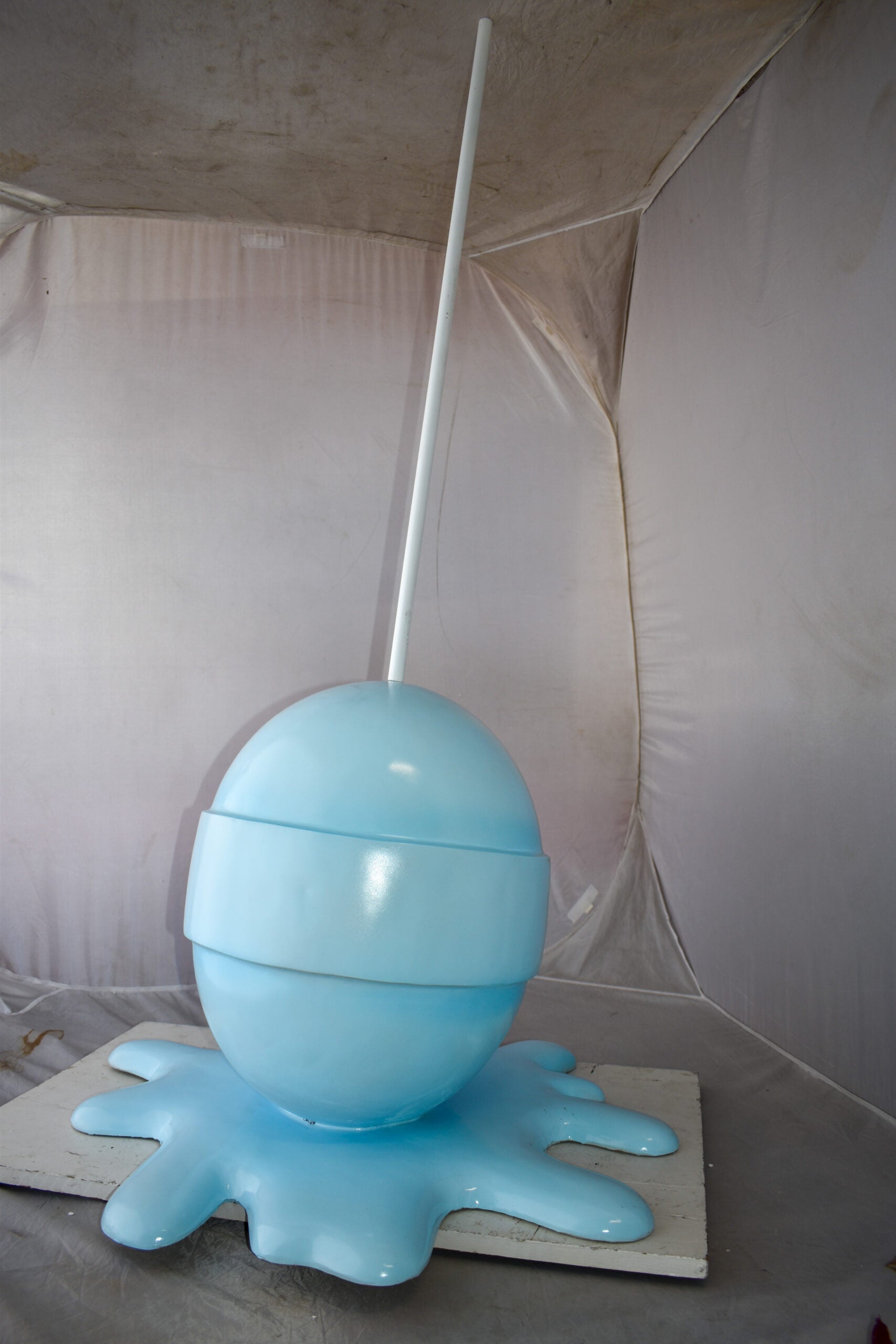 Giant Blue Lollipop Melted on The Ground Resin Statue Size: 31" x 27" x 56"H