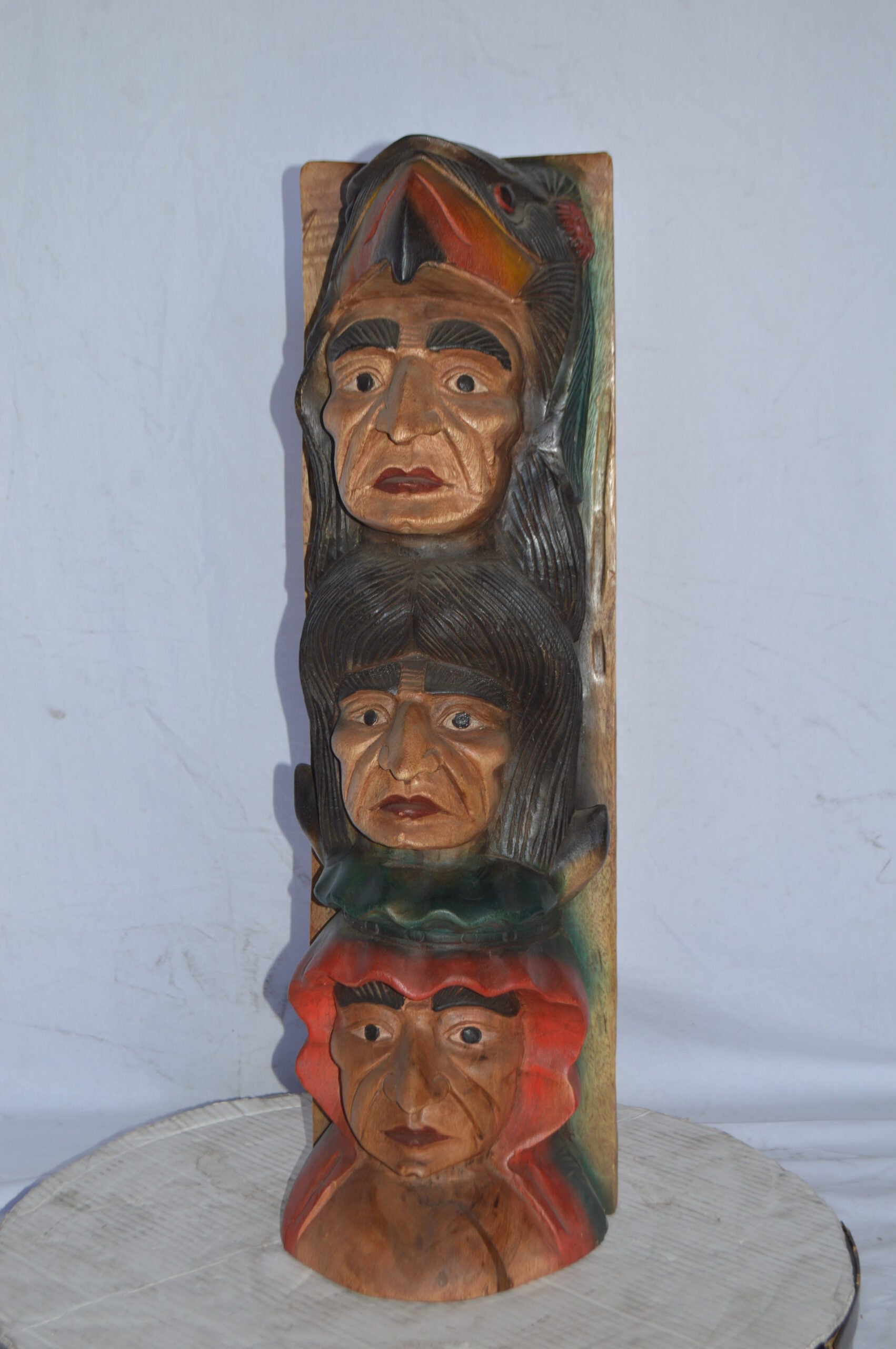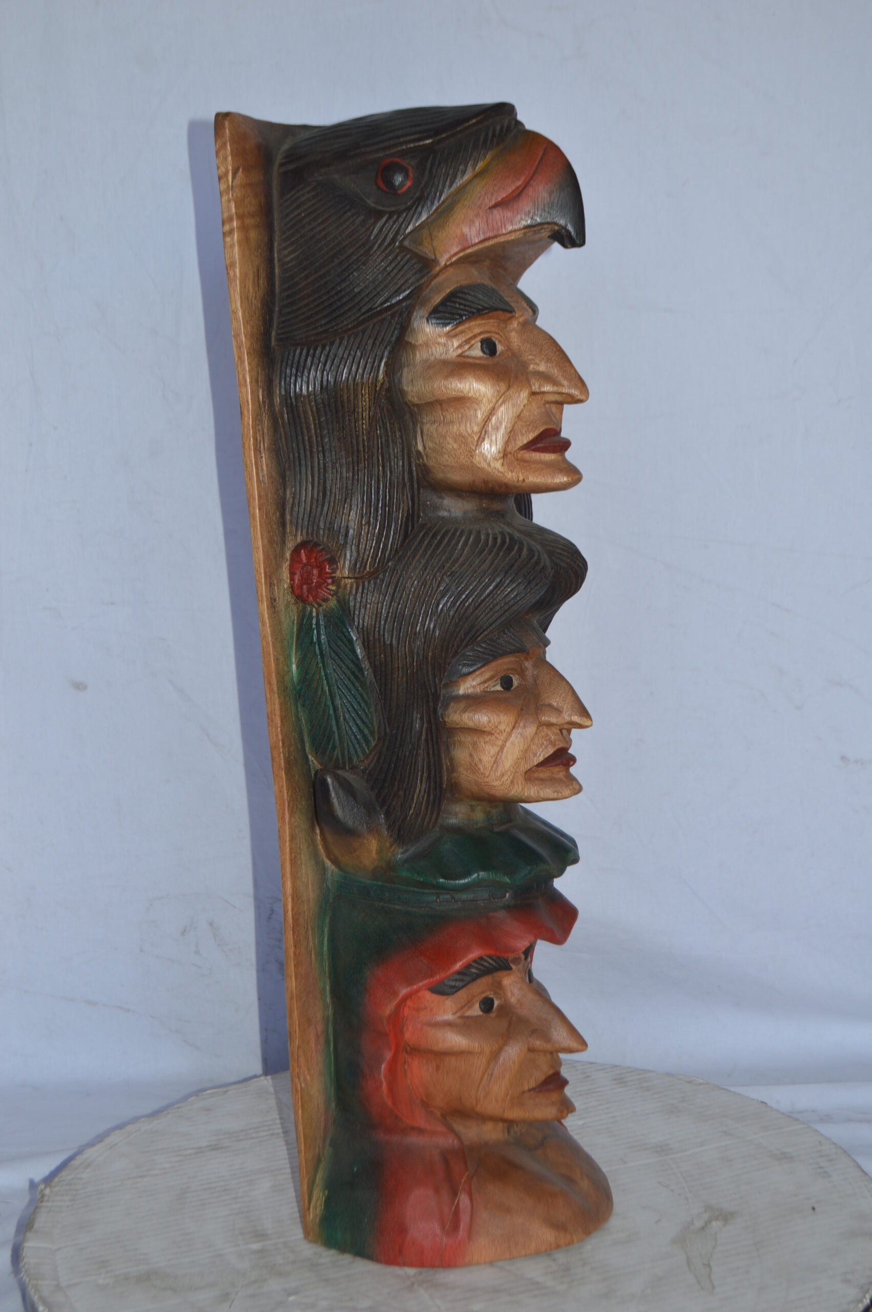 Indian Totem Made of Wood Statue - Size: 8"L x 10"W x 30"H.
