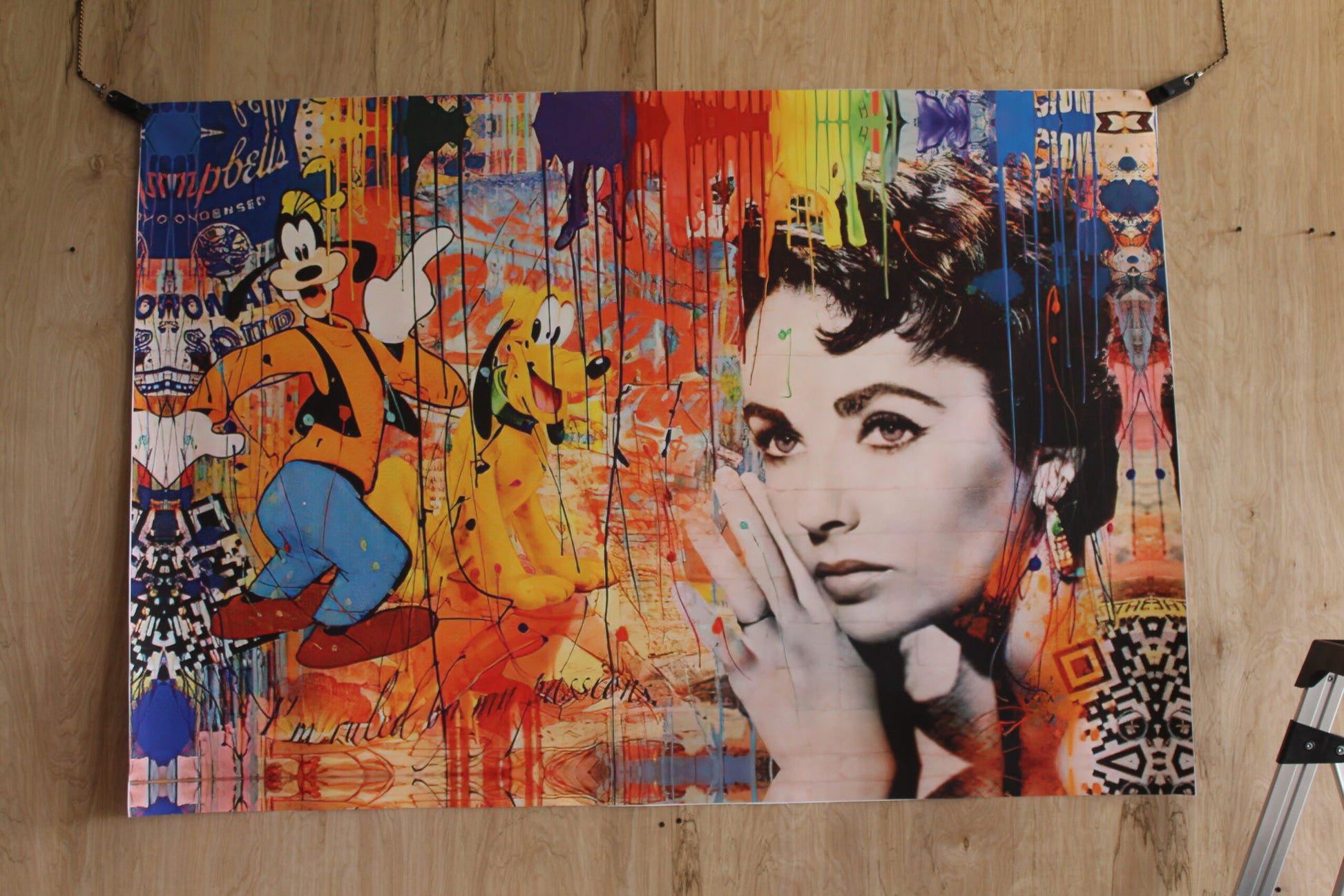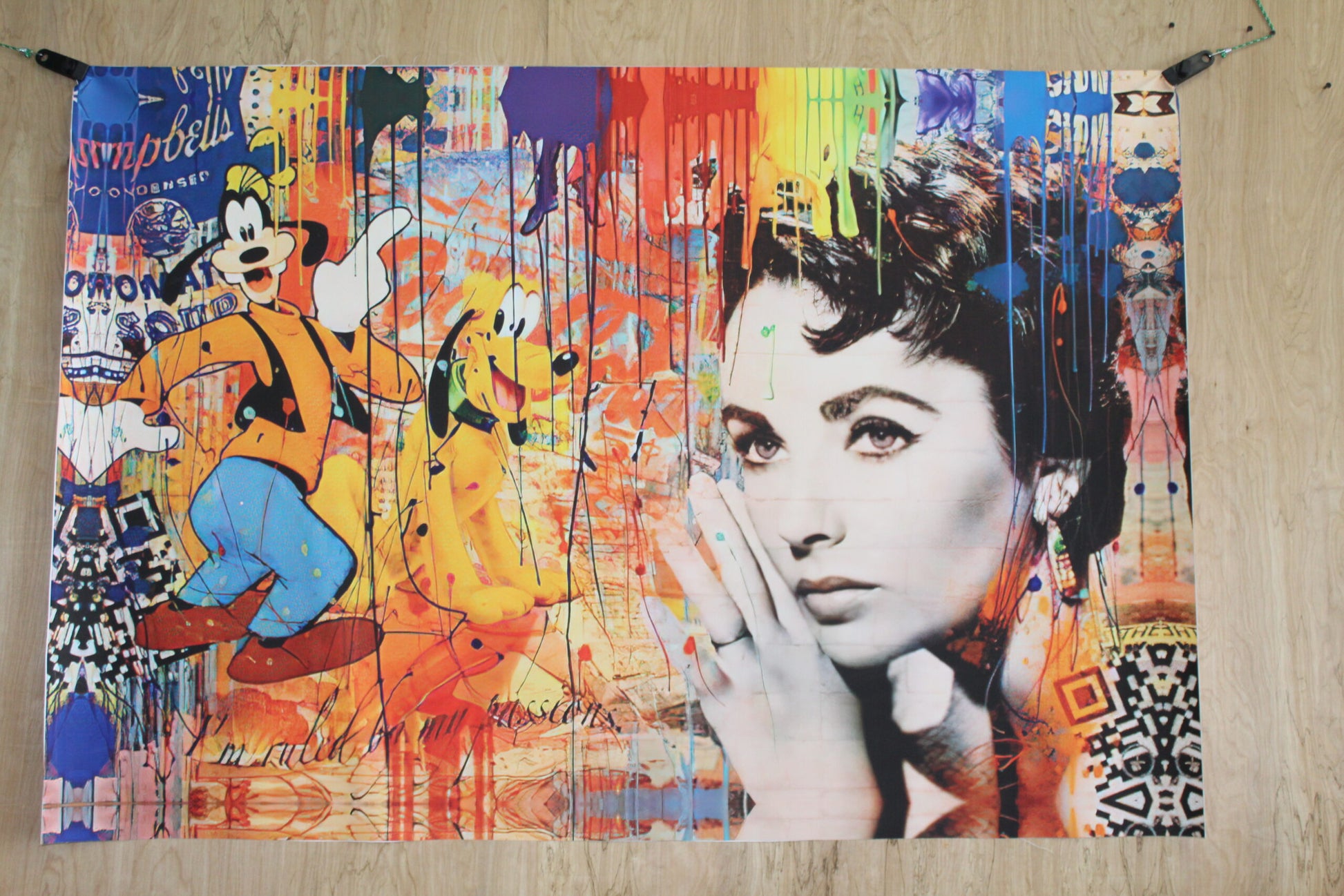 Liz Taylor And Goofy Pop Art Replica, a Giant Unstretched Canvas, 64"x44"