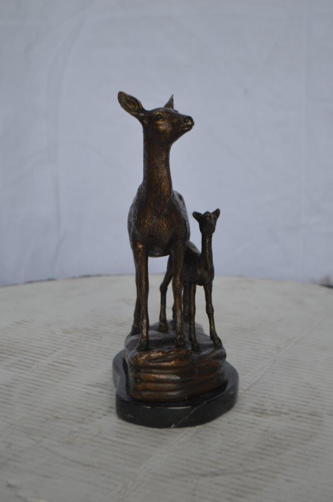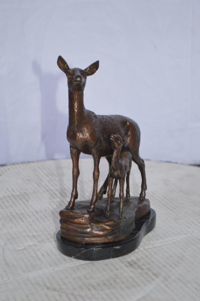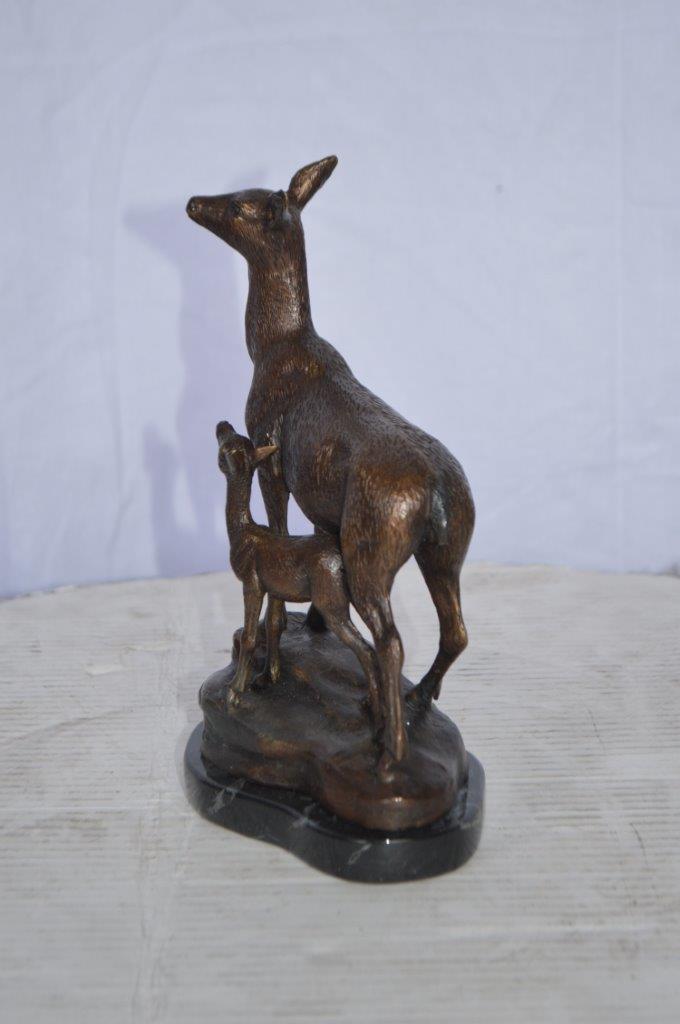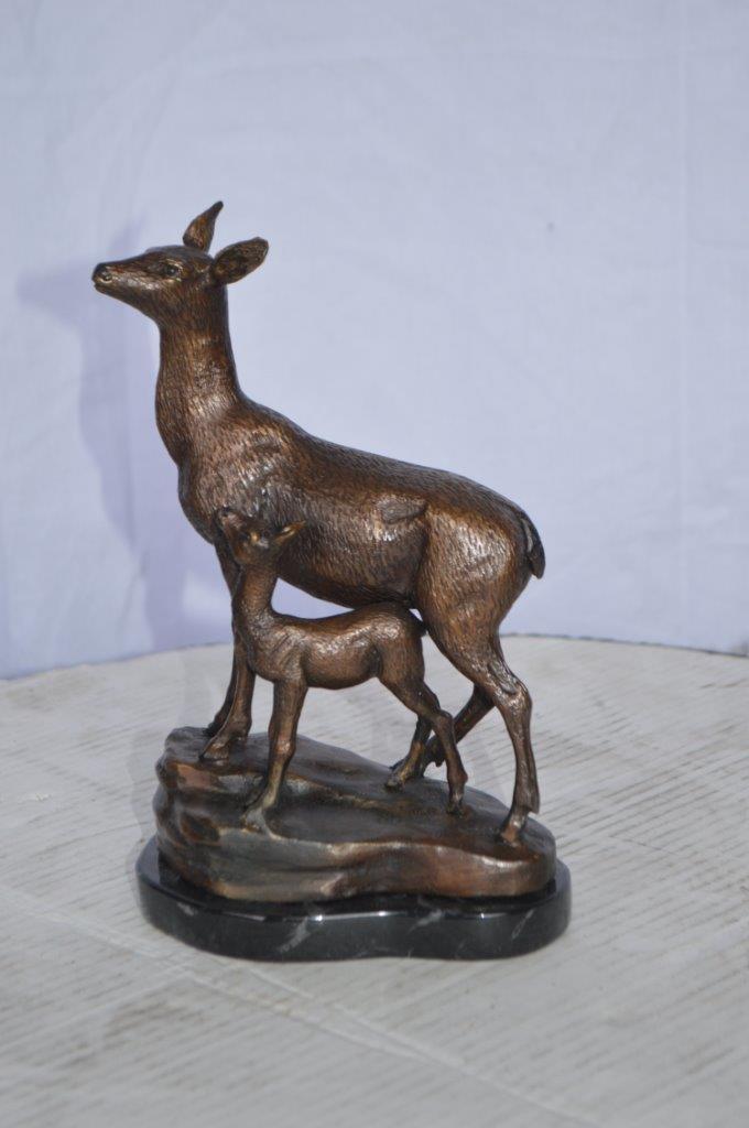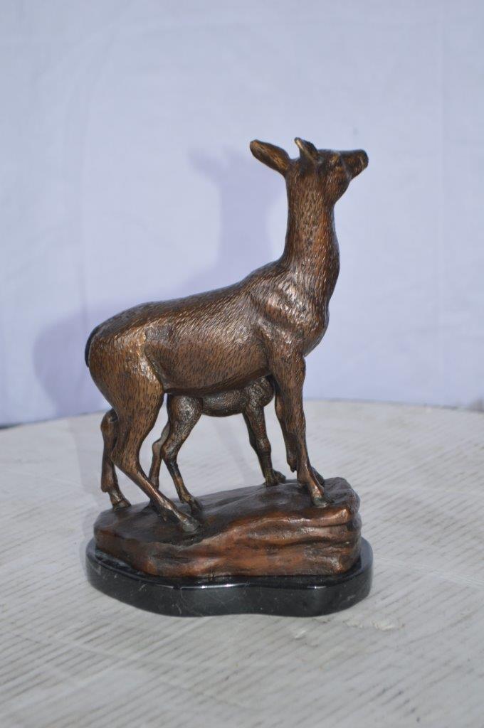 Mother Deer and Her Fawn- Bambi Bronze Statue - Size: 6"L x 4"W x 9"H.