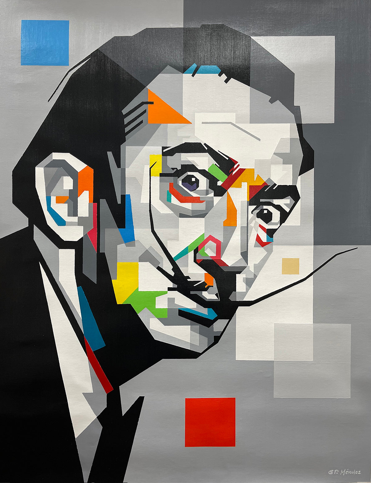 Salvador Dali Dream, A Wall Art Painting by Gerrado Mendez, limited edition giclee on canvas. Hand signed by artist. Gerardo Mendez Patricio, lives in Lima, Peru. Studied fine arts painting at the National School of Fine Arts and at the College Our Lady of Guadalupe. His art education includes the National School of Fine Arts Class of 1988 Fine Arts Painting, awarded with second prize promotion brent way 1988 and 2VS Gallery first prize with the Catholic University Faculty of fine arts. This artwork comes framed in a beautiful silver floater frame. Image Size: 36x48.