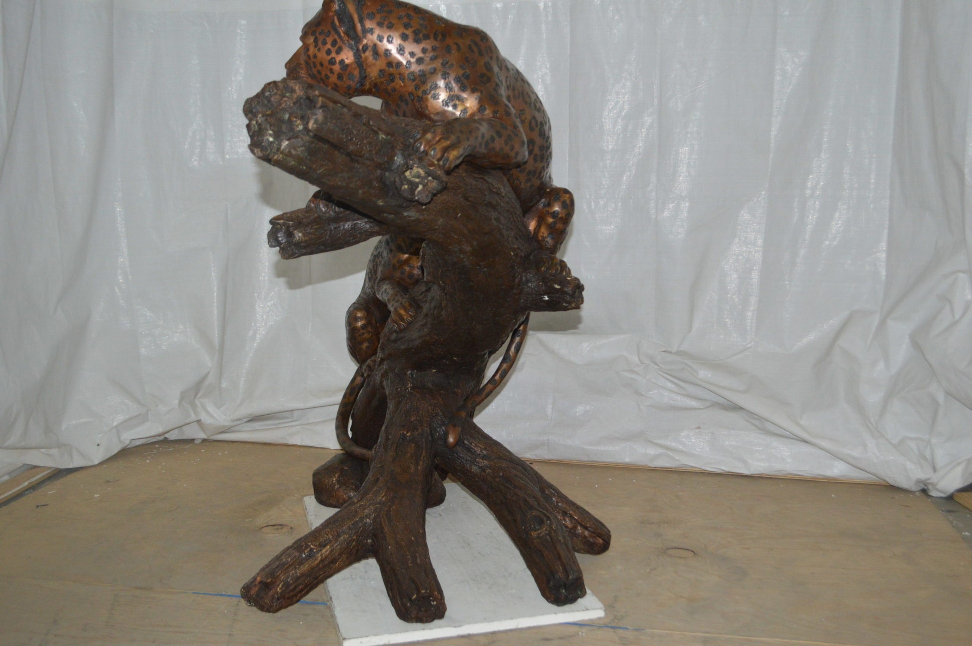 SKU:TwoJaguarsOnATreeBronzeStatue4008