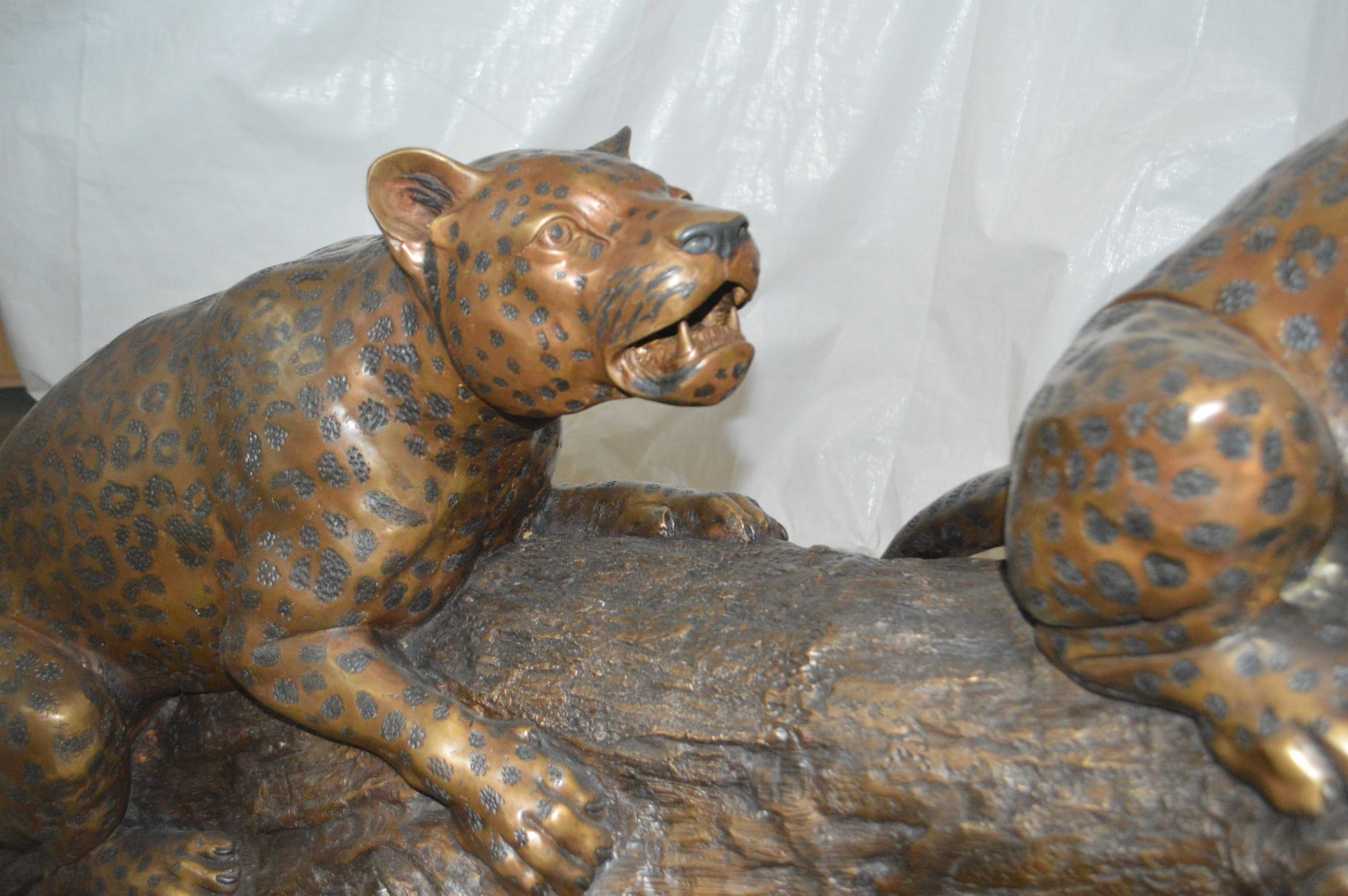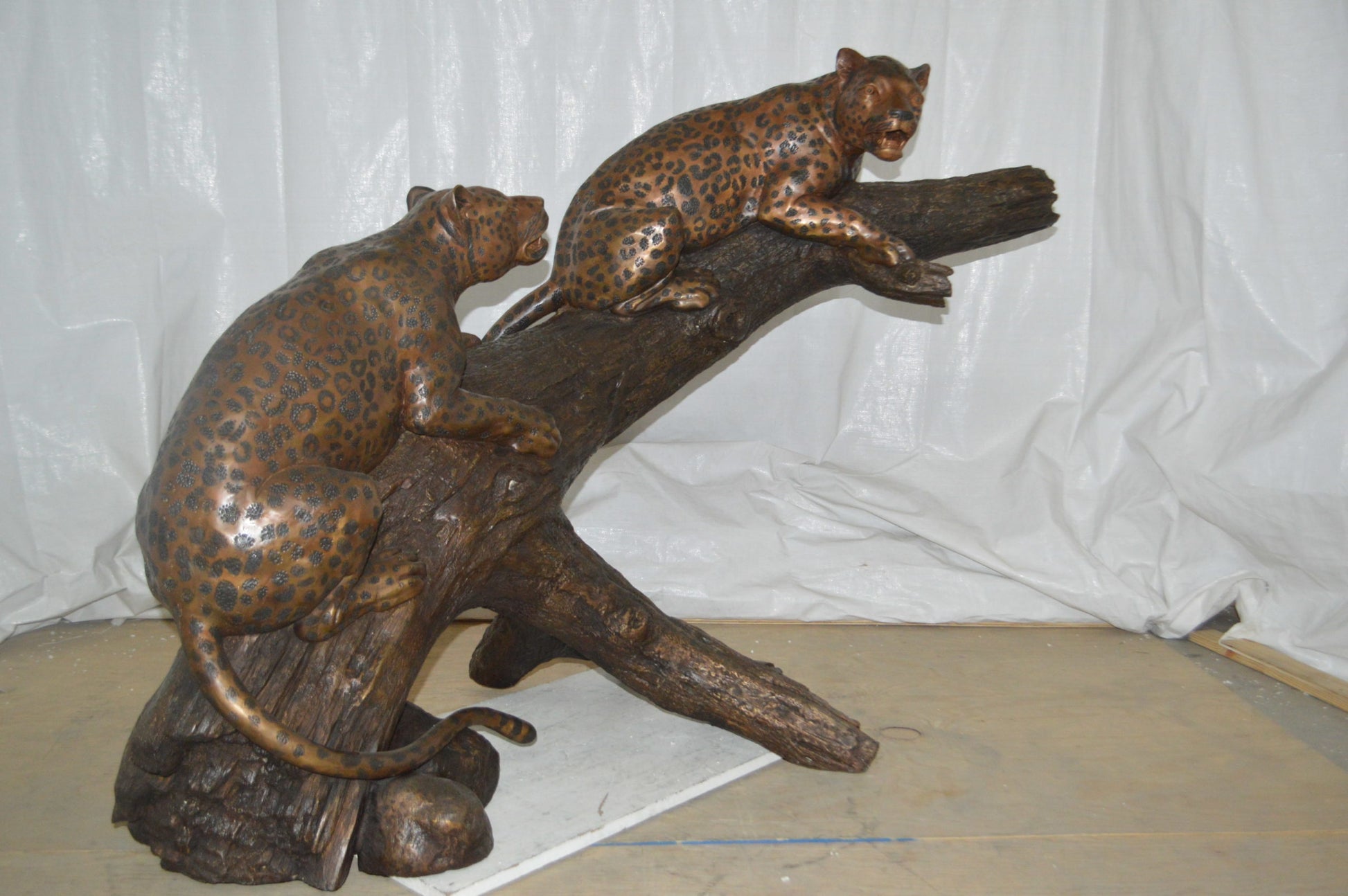 Two Jaguars On A Tree Bronze Statue - Size: 66"L x 34"W x 44"H.