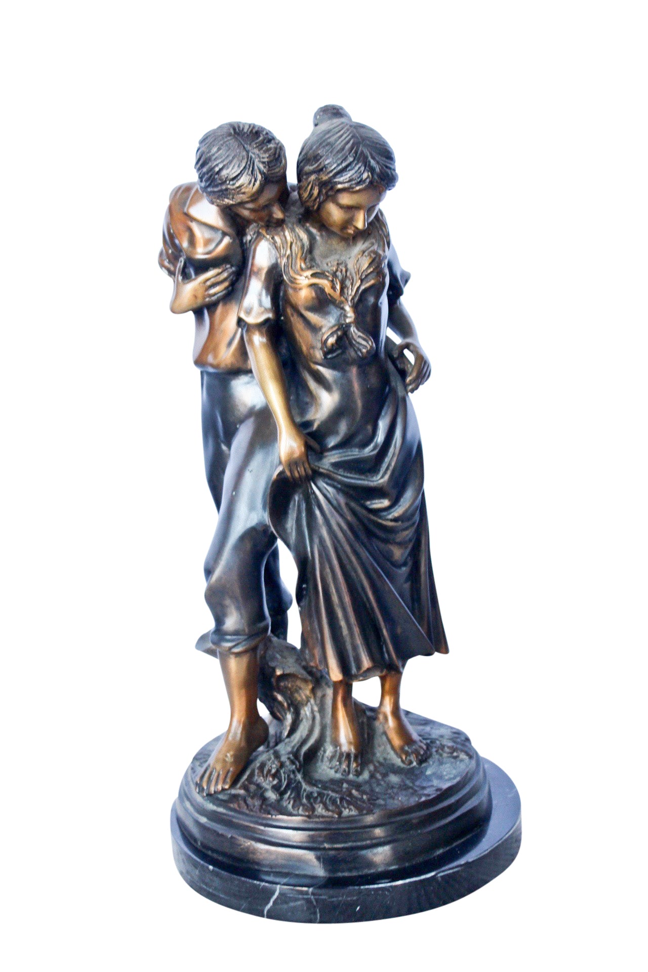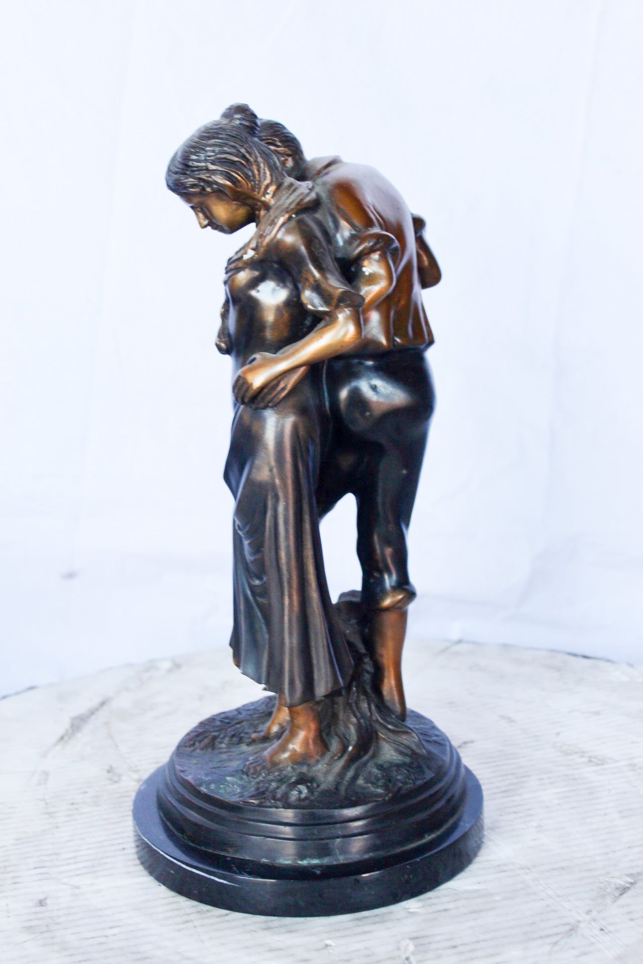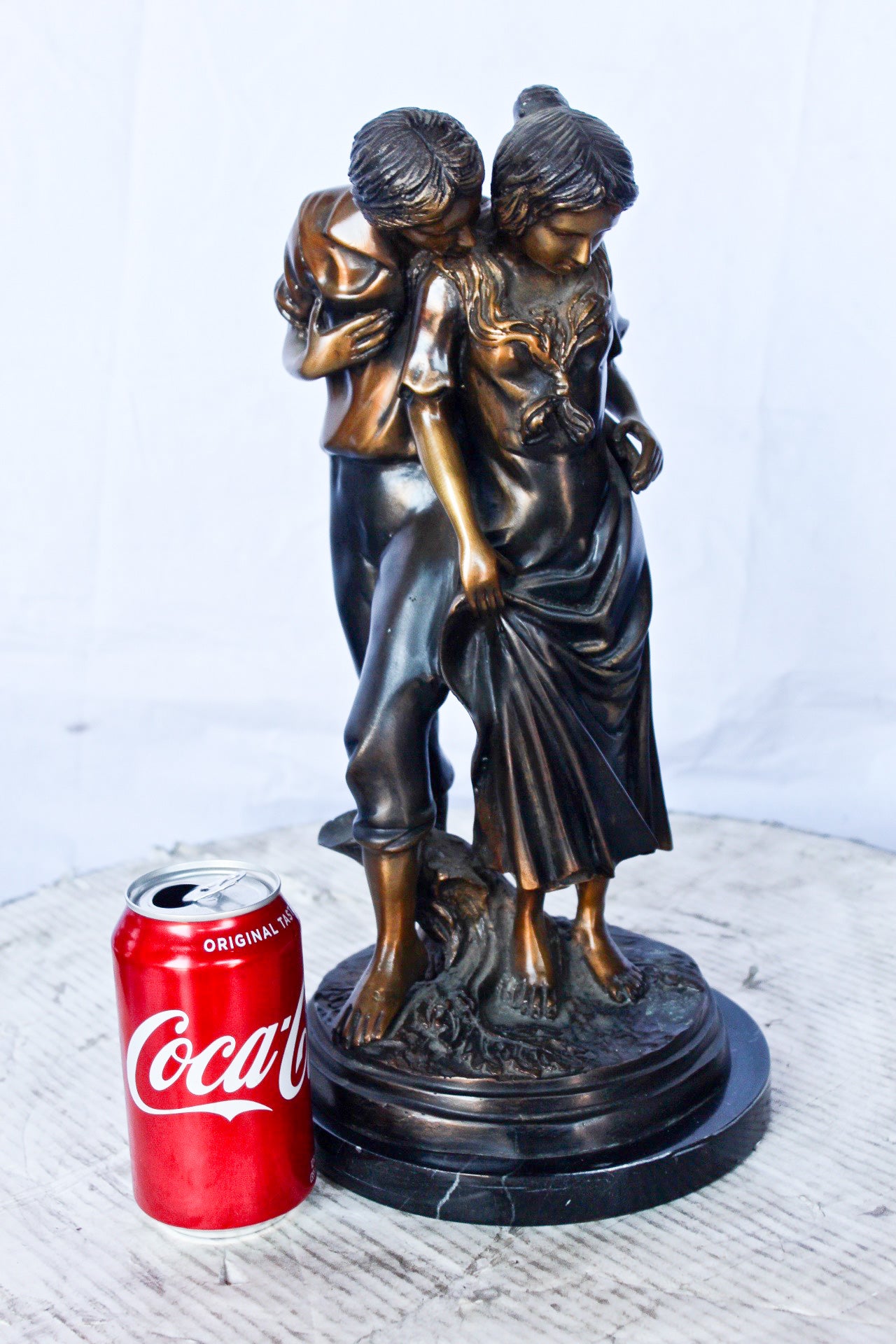 Two shy lovers bronze statue - Size: 8"L x 8"W x 15"H.