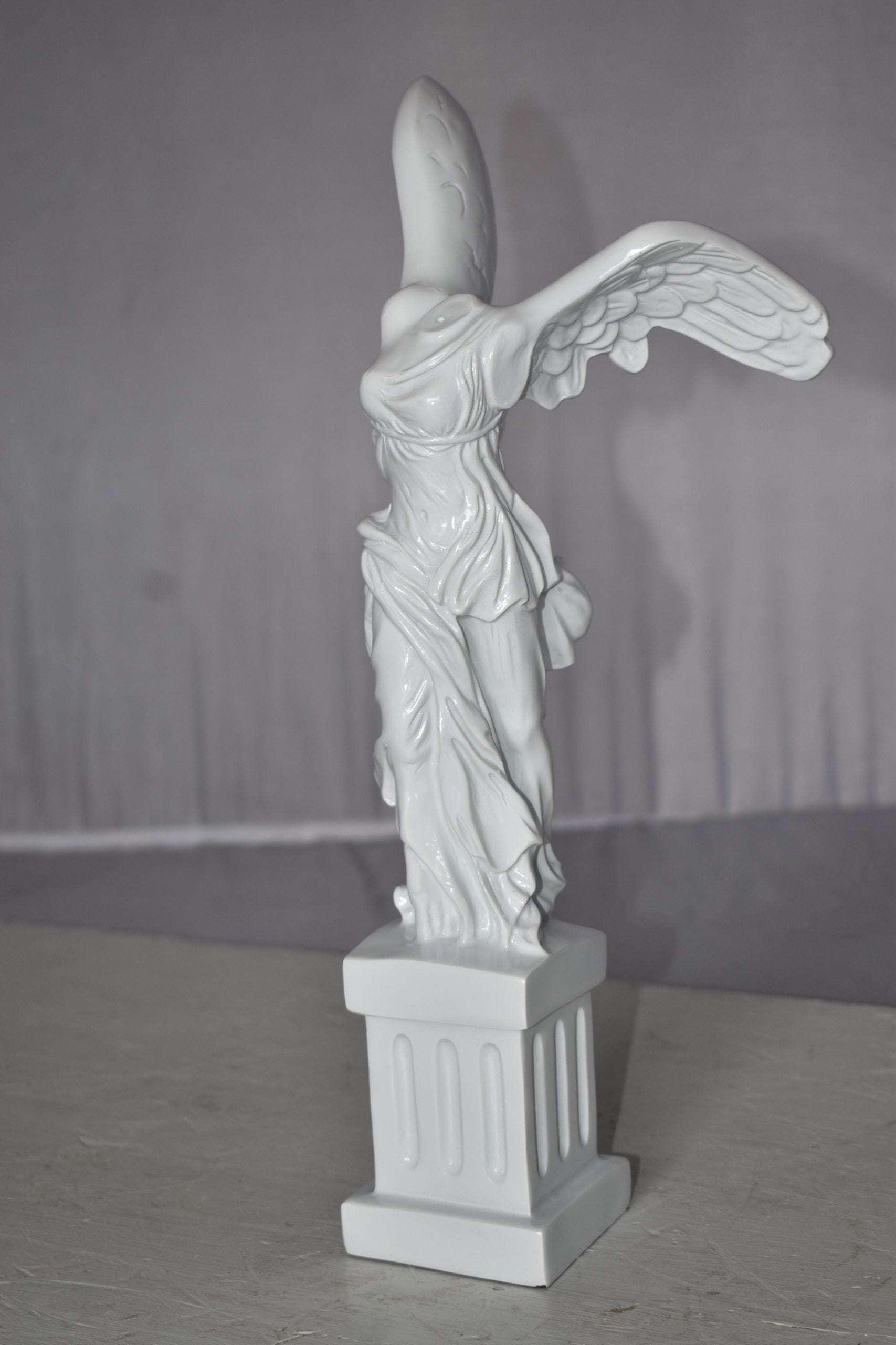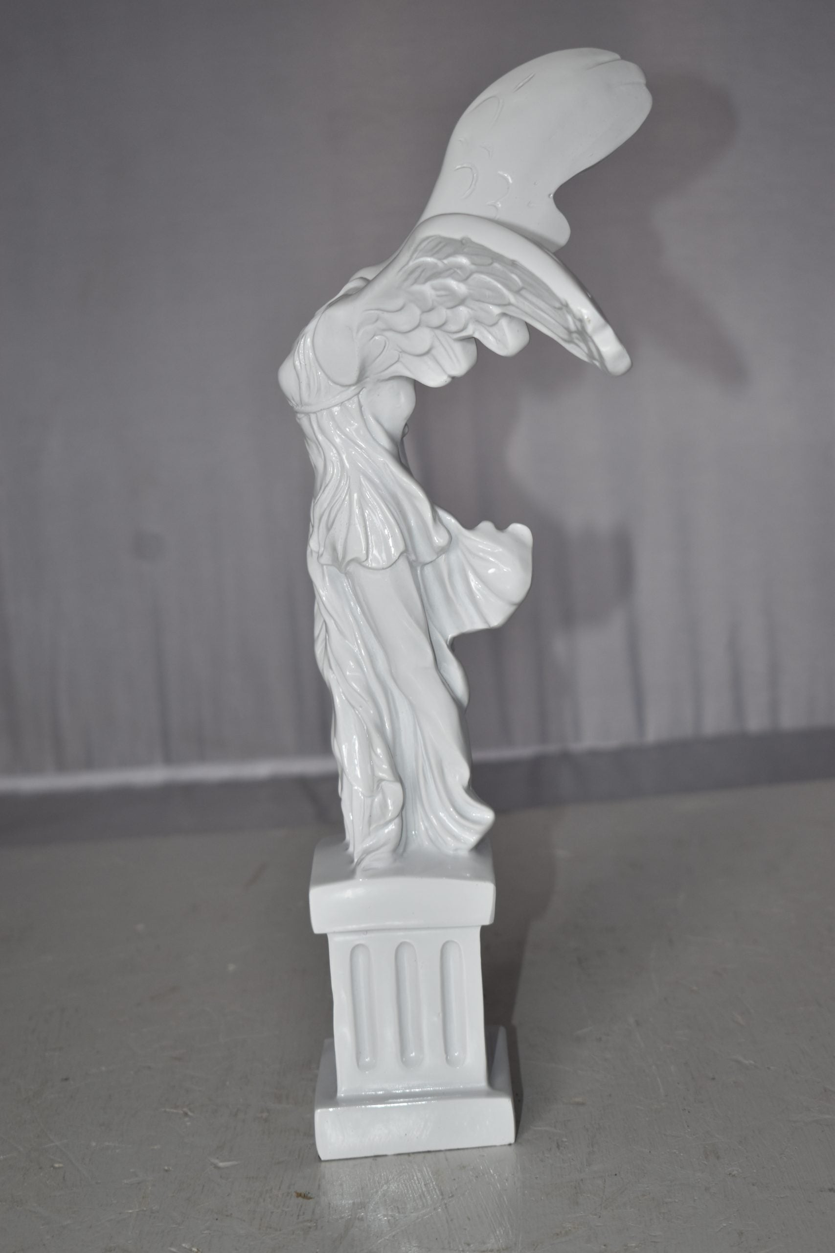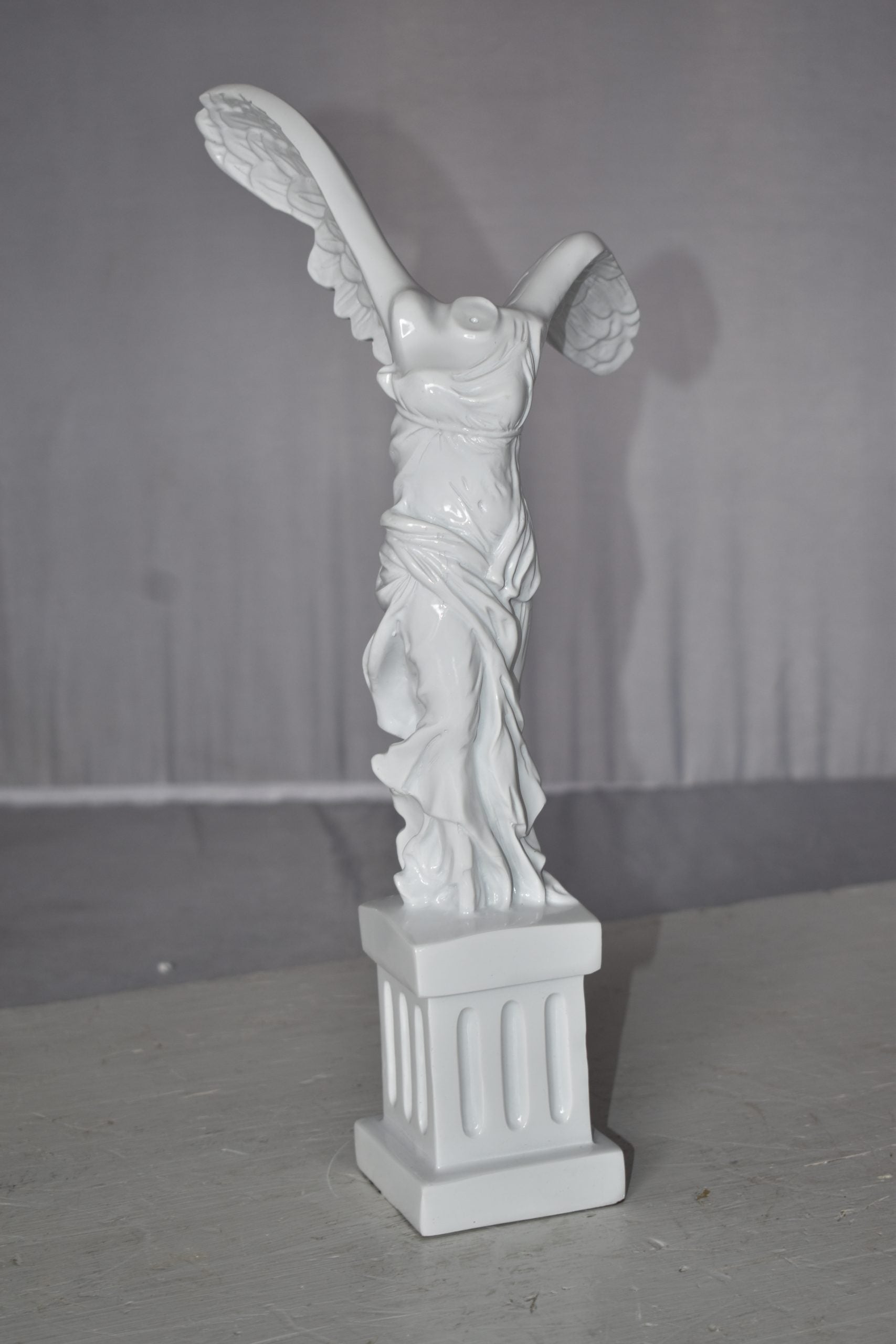 Enjoy this Winged Victory Nike of Samothrace Statue Made of Resin. This modern abstract would be a great addition to your home. Resin casting is a method of plastic casting where a mold is filled with a liquid synthetic resin, which then hardens. Get one for yourself or surprise a friend with an unforgettable gift! Size: 6"L x 6"W x 14"H. Weight is: 2Lb