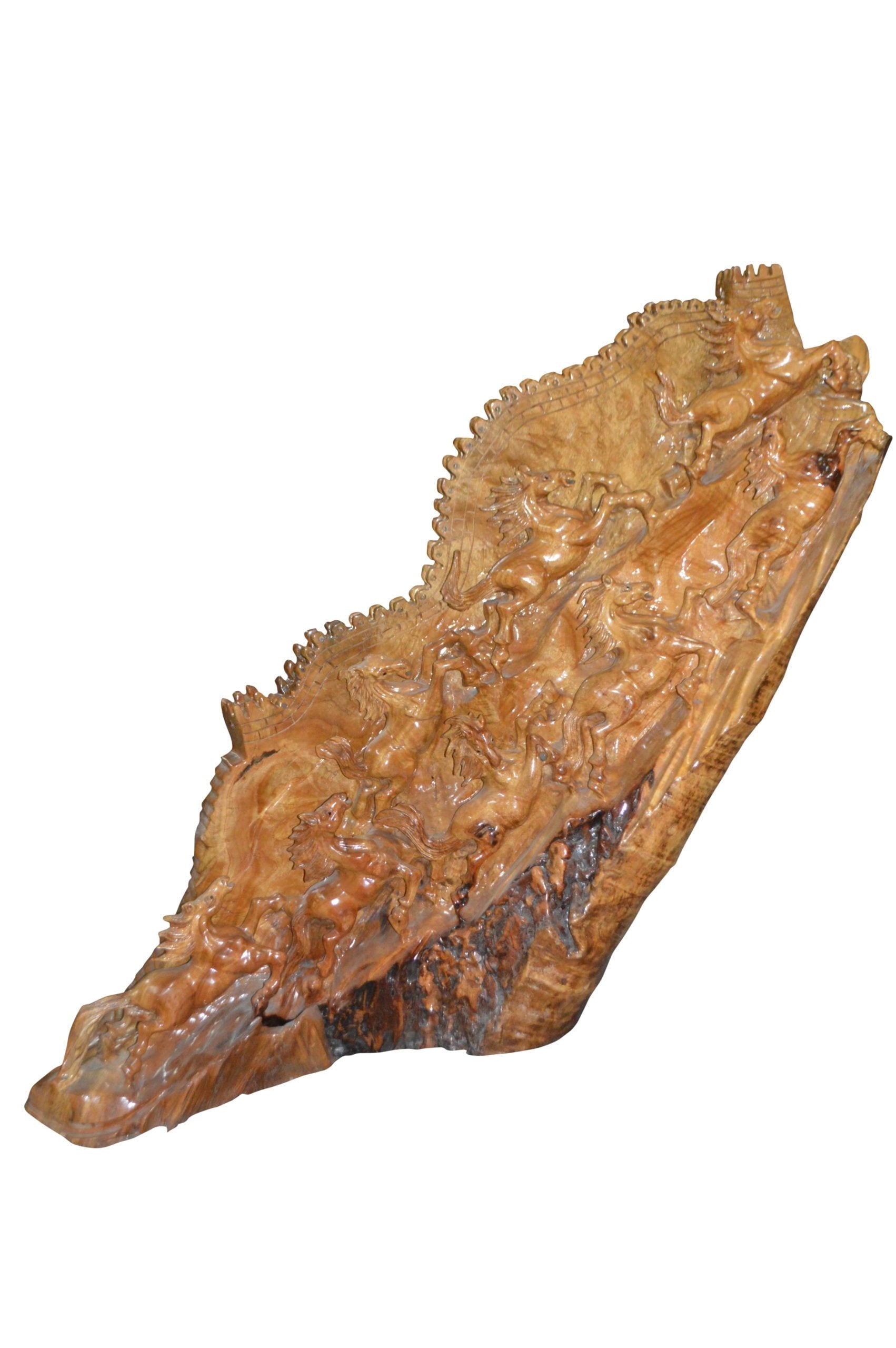 Here is a magnificent impressive wood curved statue of wild horses running up a hill. Beautify your interior with masterfully crafted wooden sculptures Hand-carved from top quality wood. The statue is a one of a kind art piece, made to give your home style and personality. Get one for yourself, or surprise a friend with an unforgettable gift!. Size: 60"L x 18"W x 38"H. Weight is: 102Lb